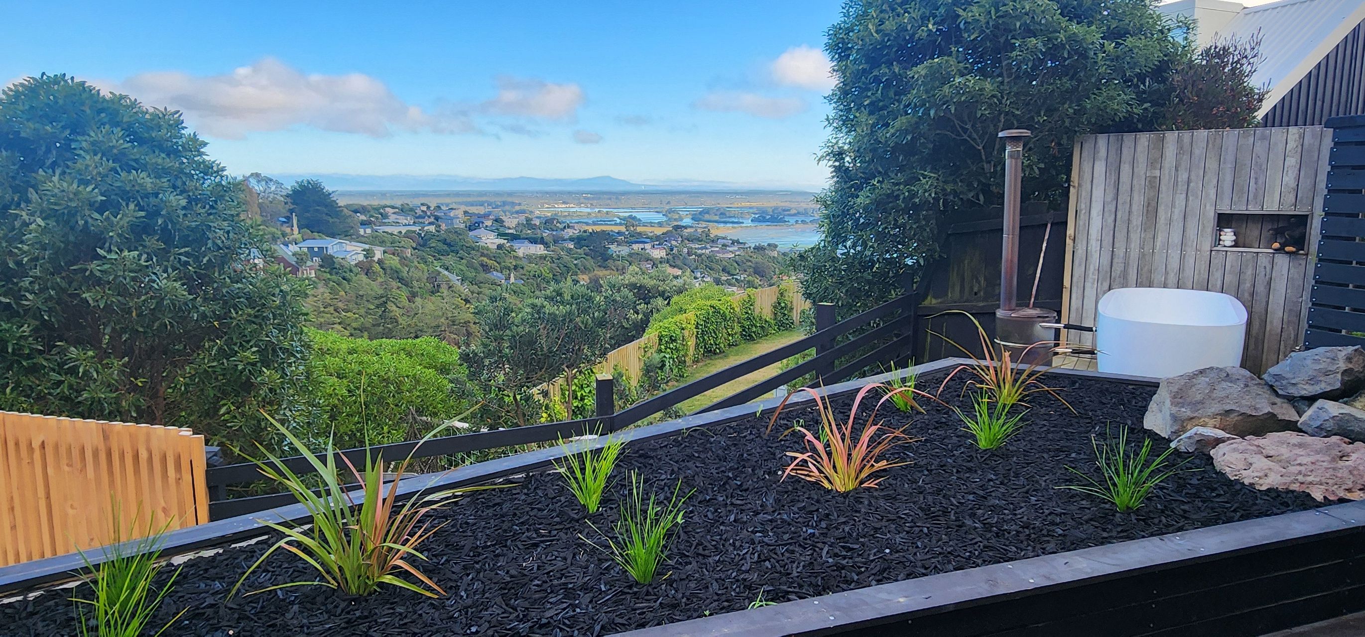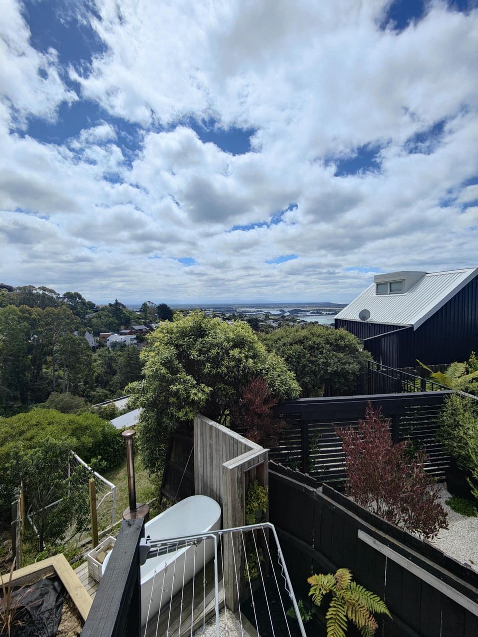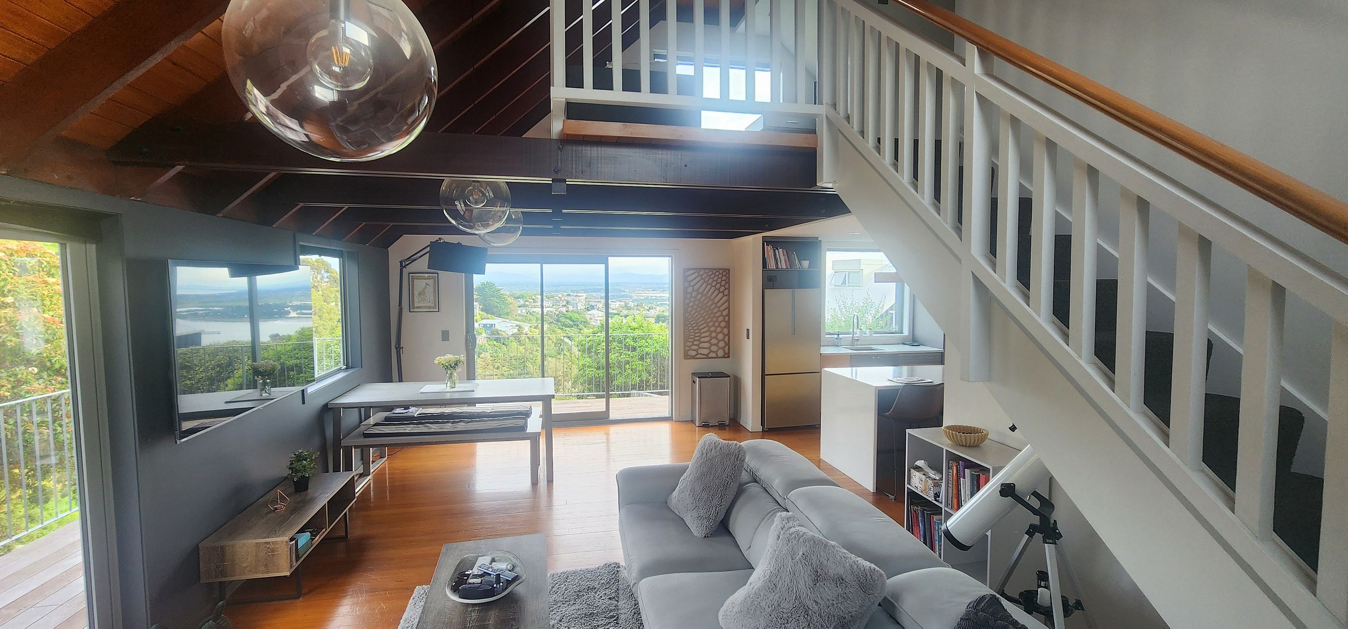 2.5/3 bedroom, 1 bathroom on the hill overlooking the estuary. Two down stairs bedroom and a large loft bedroom on the third floor. Includes office and garage.