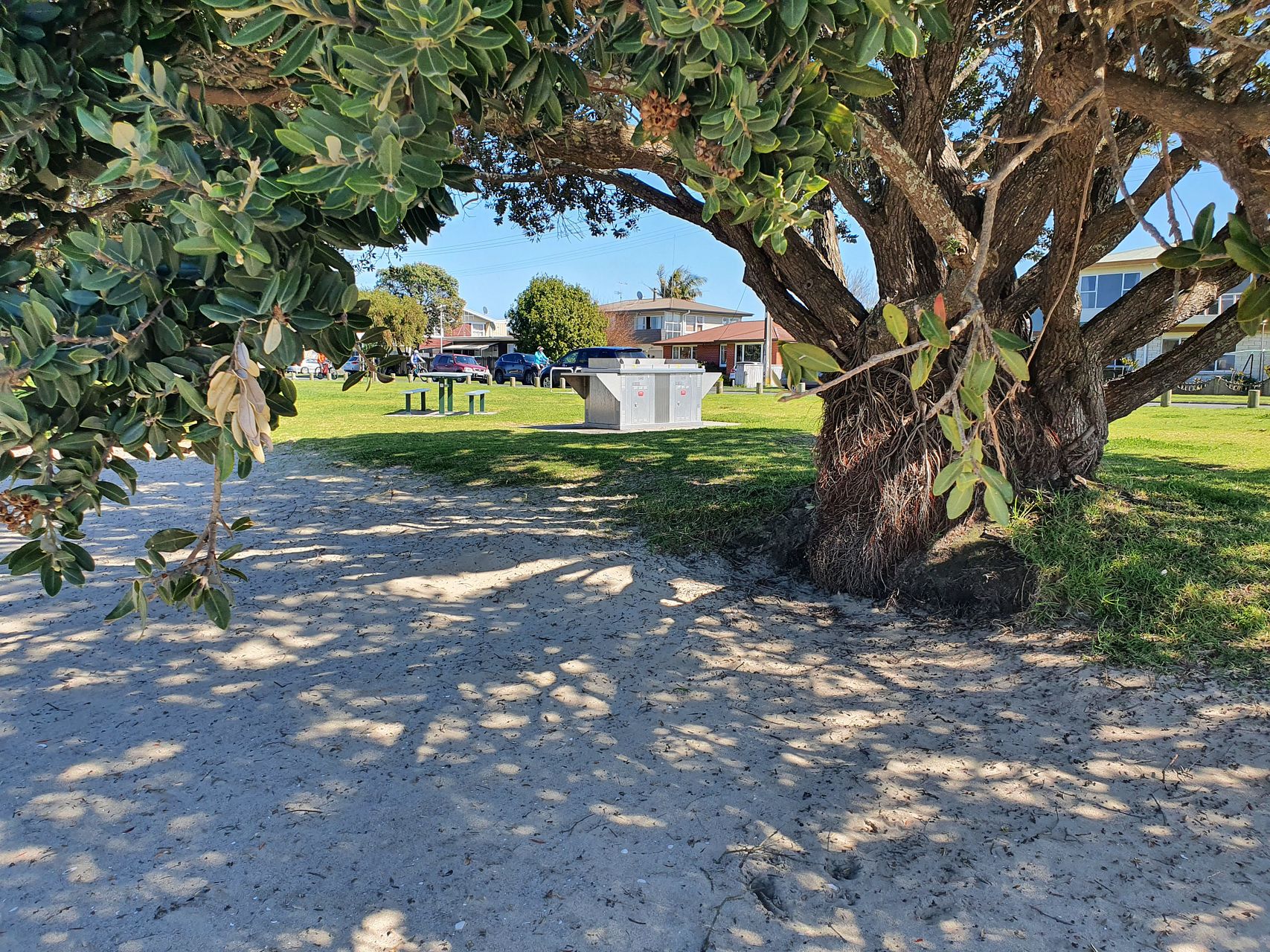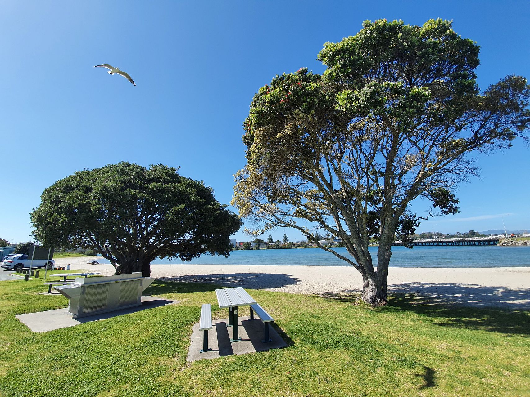 Open plan living areas with spacious fully equipped kitchen features gas hob, electric oven, fridge/freezer with huge dining table to comfortably seat up to 10. Easily flow out to dine alfresco and enjoy BBQ-ing on the large front deck looking through the pohutukawa trees to the harbour.