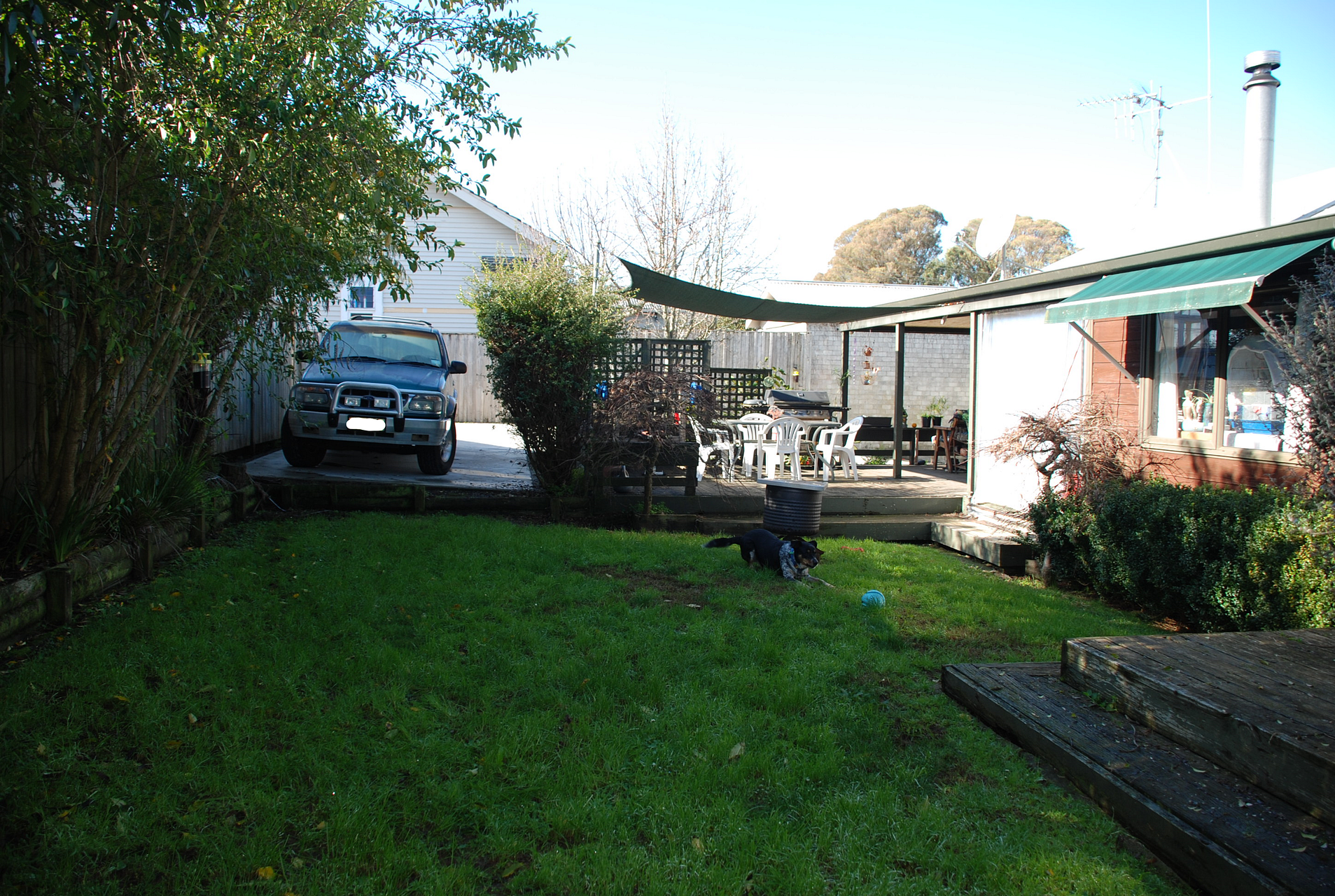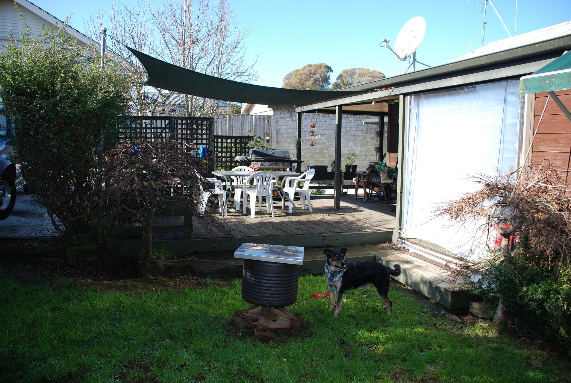 Basic garden includes lawn, fruit trees, space to grow vegetables and store firewood.
