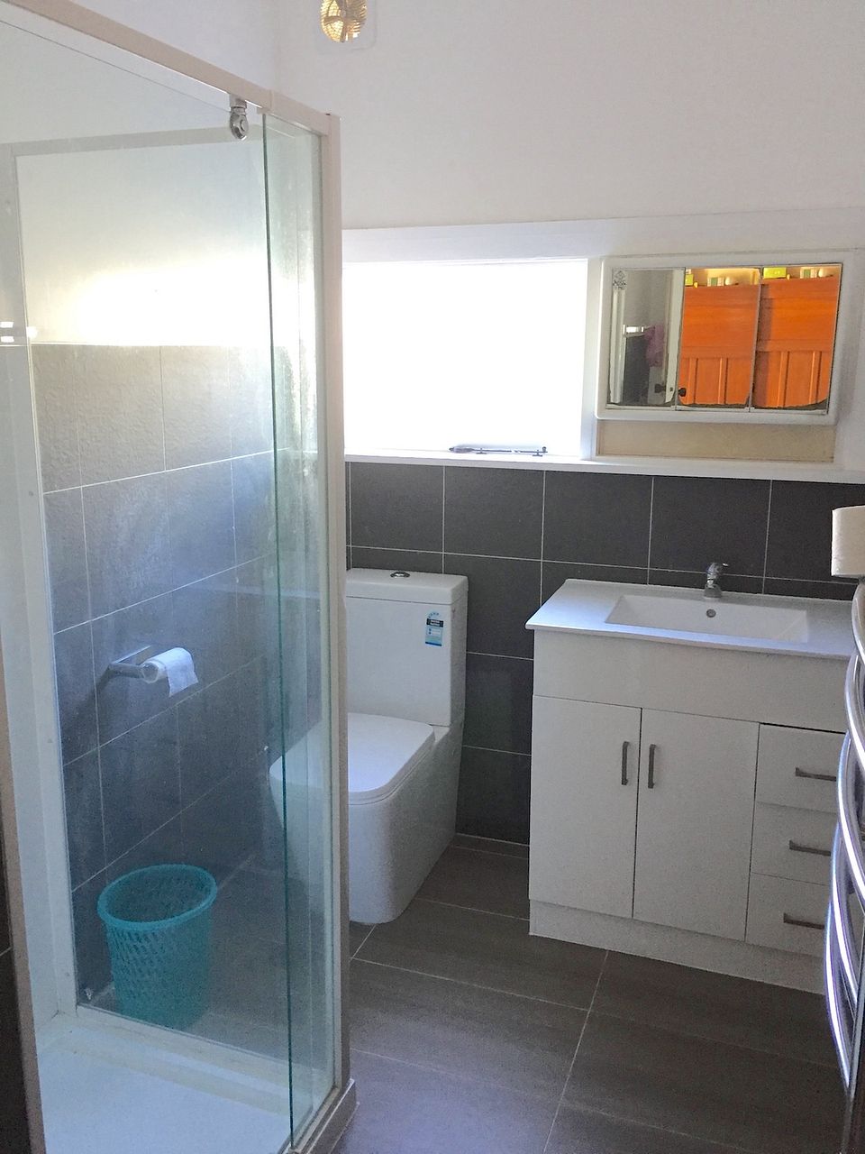 The renovated bathroom is combined with the toilet.