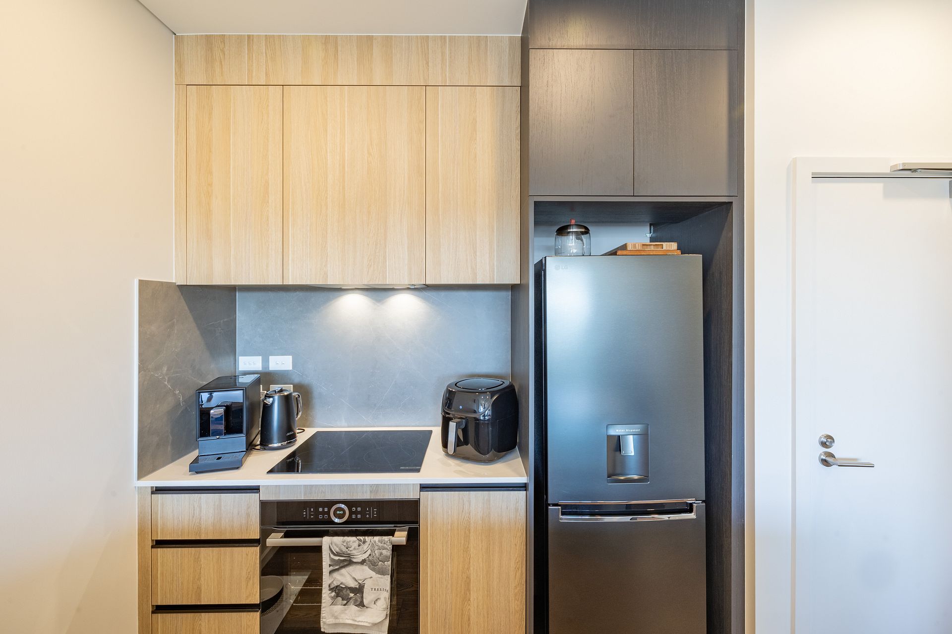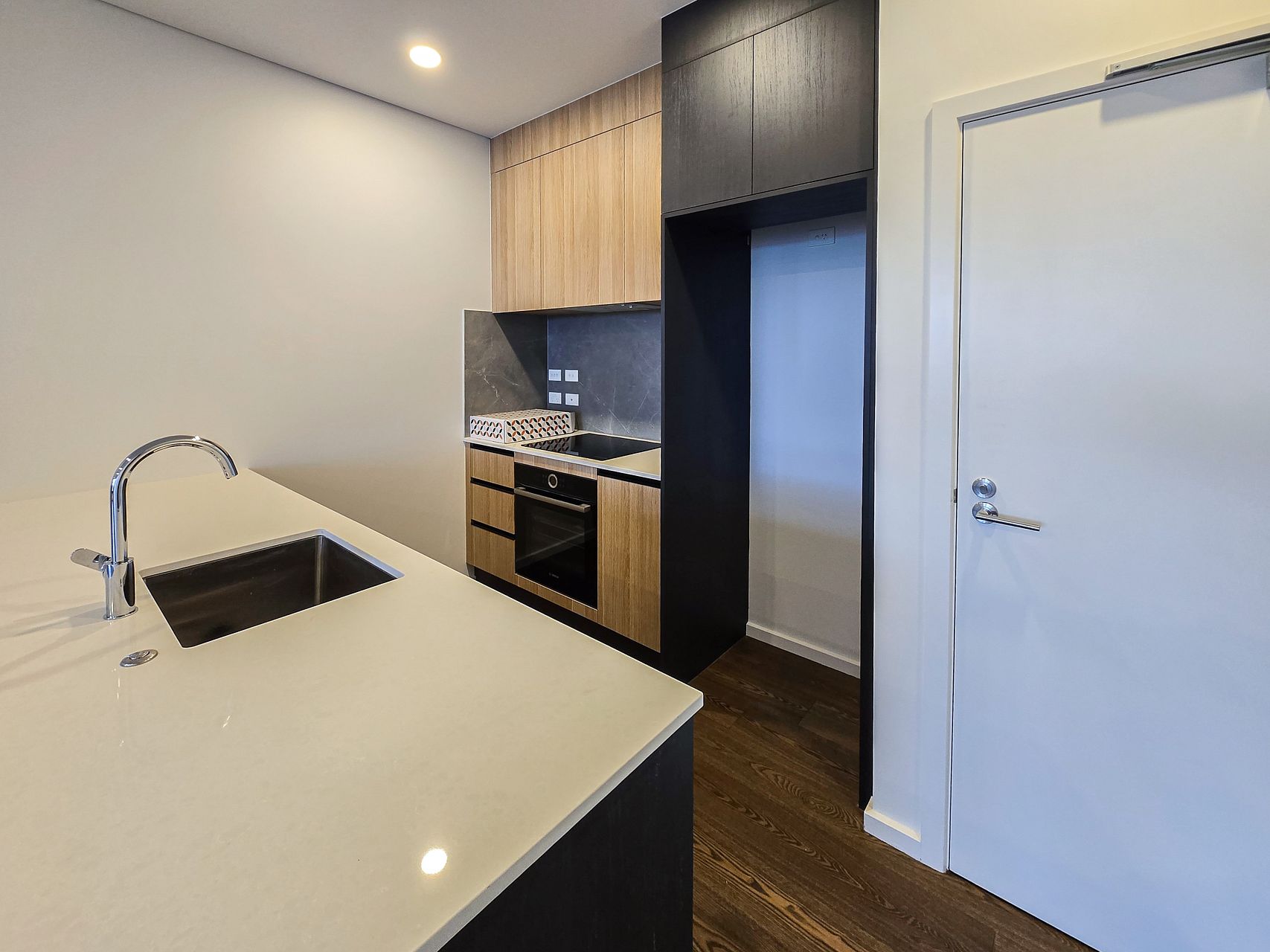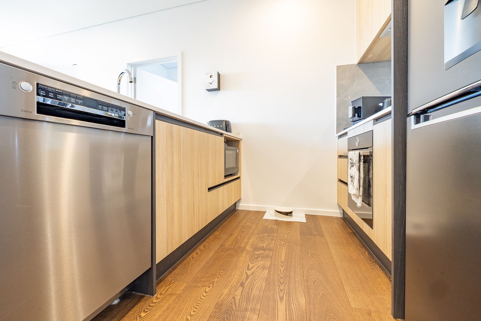 • Premium flooring: Engineered timber throughout the living areas with acoustic underlay for noise reduction, and durable, stylish tiles in the bathroom.