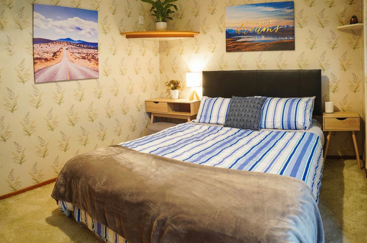 A comfortable 1950s 3-bedroom house, beautifully decorated, with an open plan kitchen and dining area. It has 1 bathroom, 1 separate toilet and 1 laundry room. All bedrooms are double bedrooms with a queen bed. There are a cozy living area and a sunroom to relax. The backyard is fully fenced, safe for children. 5 mins walk to a supermarket and a gas station and 10 mins driving to the Victorian quarter, close to Oamaru schools and Oamaru north business centre.