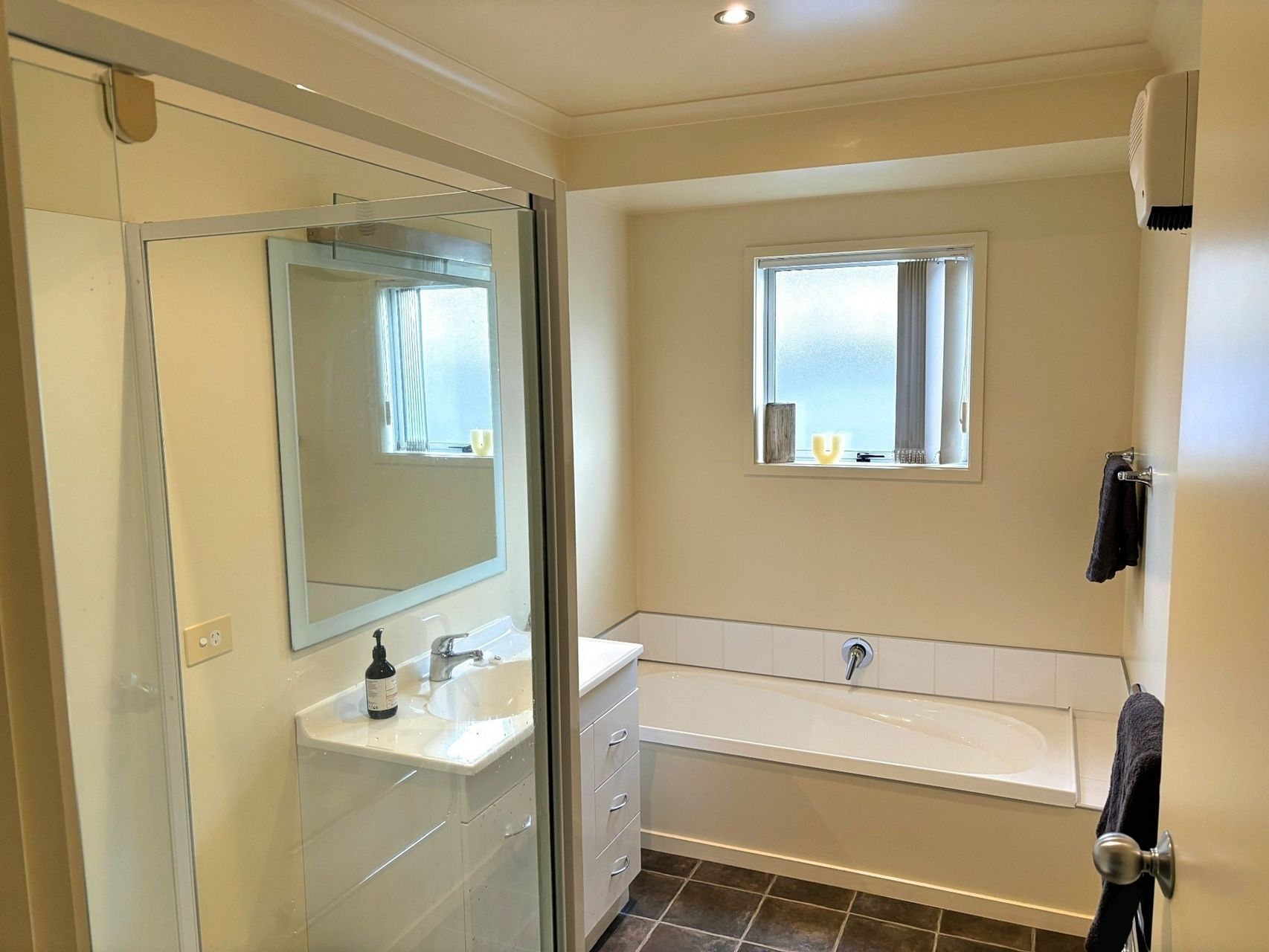 House features master bedroom with ensuite (shower, toilet, basin), bathroom (shower, bath), seperate toilet, and 2 good-sized additional bedrooms.