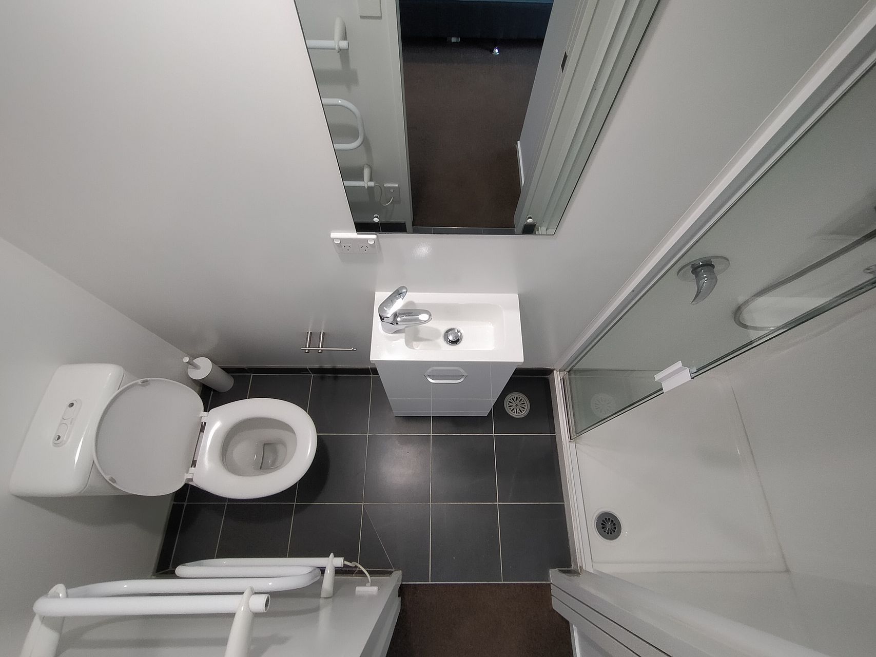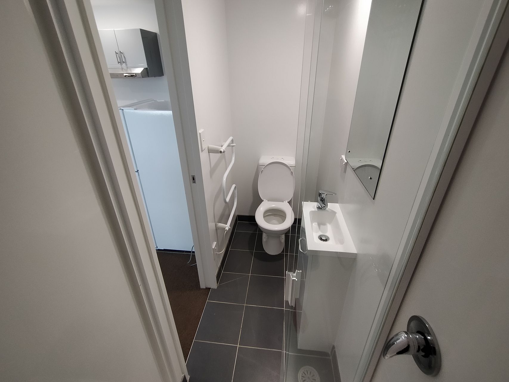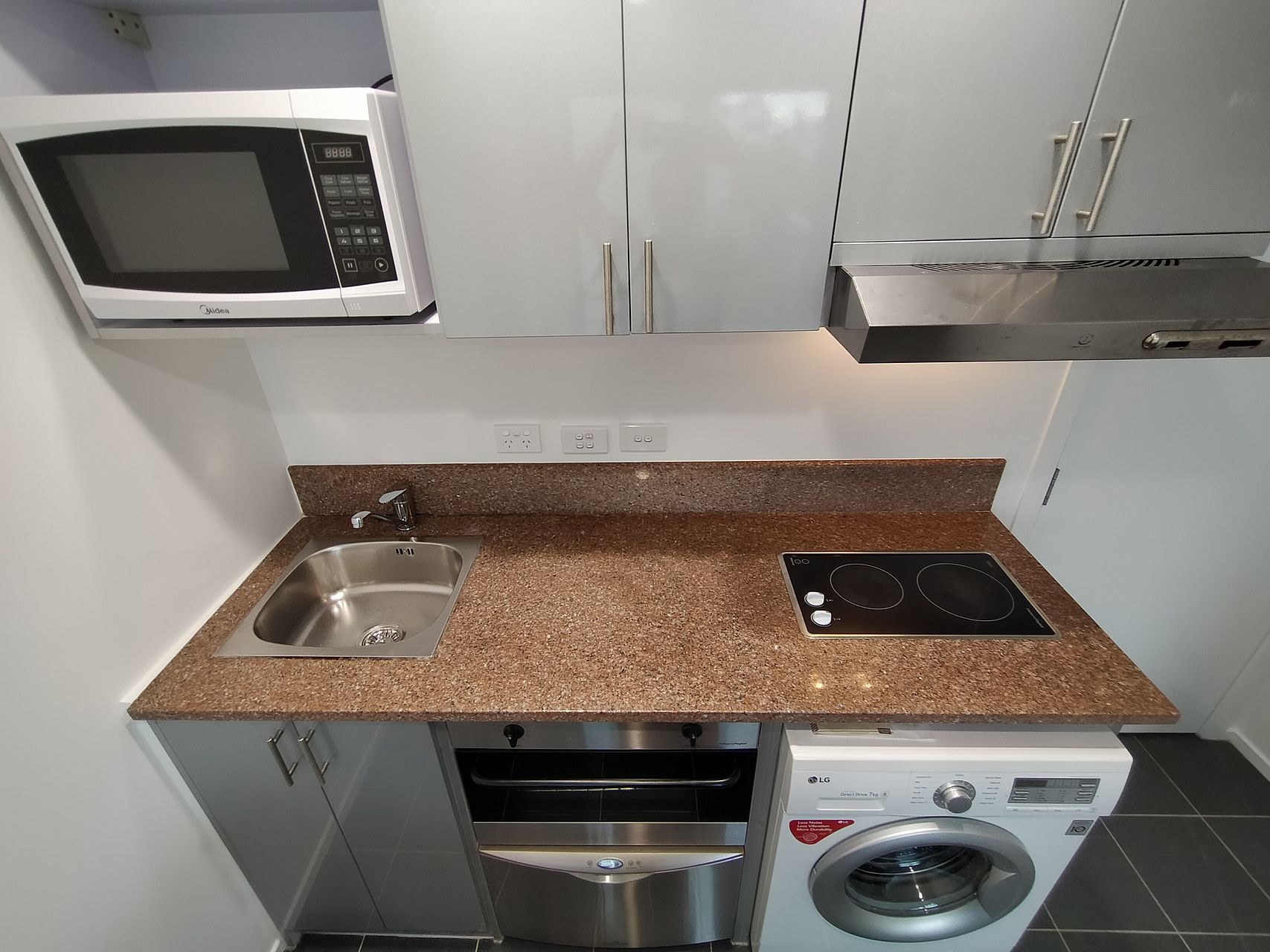 Full size kitchen, dishwasher, cooktop, full size fridge, washing machine & dryer (all in one), bathroom with shower, king single bed with new mattress + base, closet, heater, heated towel rail.