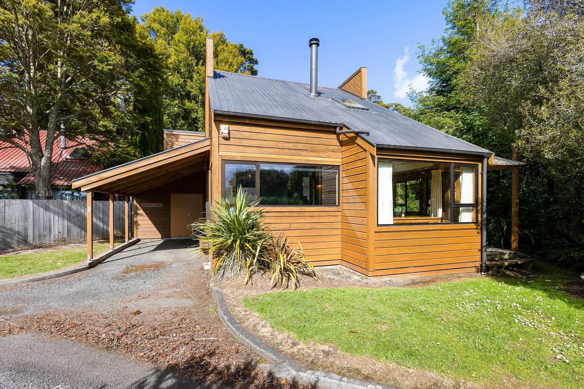 Cedar cladding, carport, and lockable storage areas