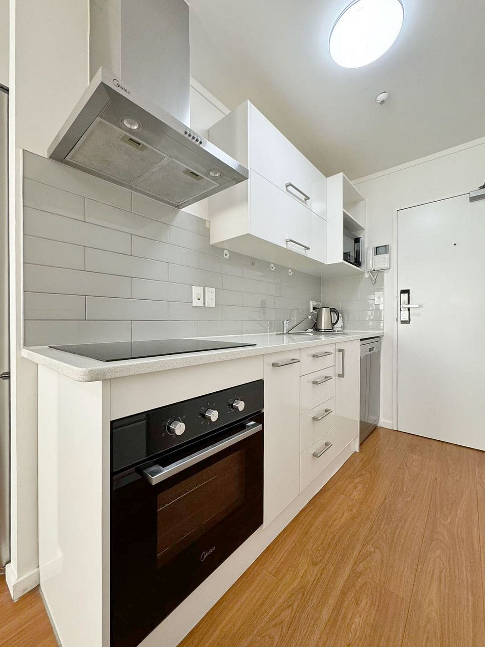 This beautiful fully furnished apartment comes complete with a modern kitchen. The open-plan living area features wooden floors and opens to a small balcony. It comes with whiteware and a dishwasher.