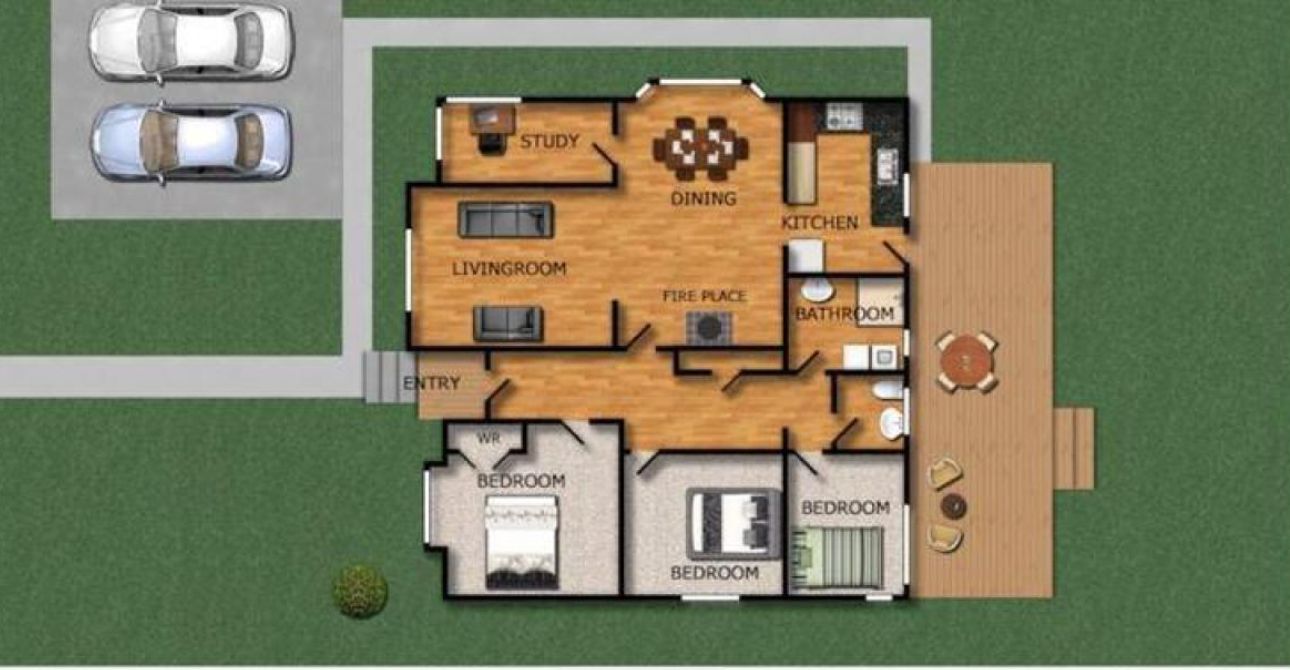 3 large bedrooms, 1 bathroom, and a study/home office which can be used as the 4th bedroom. Includes a deck and a large backyard.