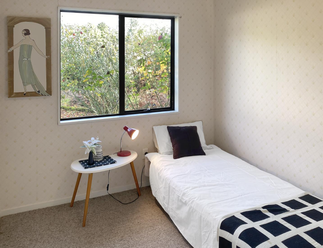 This warm sunny three-bedroom home is set in a peaceful quiet neighbourhood with a rural feel. It has an open plan kitchen and dining area that flows into a nice size lounge. The lounge features sliding doors that open onto a deck. Carpeted throughout for a cosy warm home.