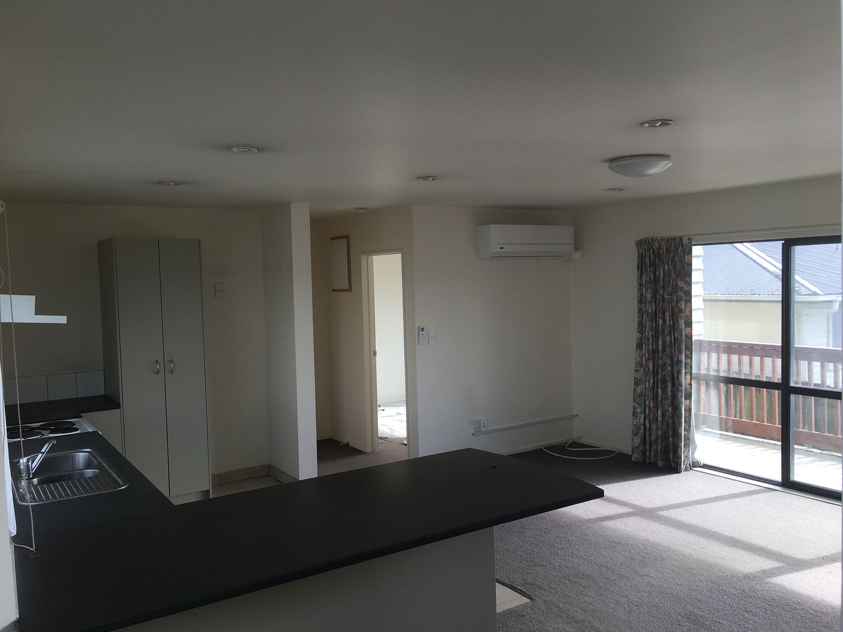 Middle floor has one bedroom with bathroom, lounge, kitchen, entertaining deck and heat pump