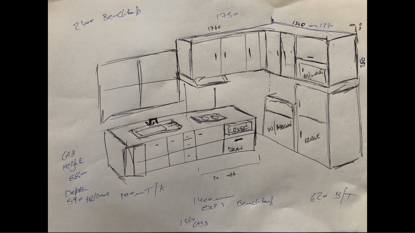 Kitchen – a mini oven, microwave, fridge with freezer, pantry space and washing machine.