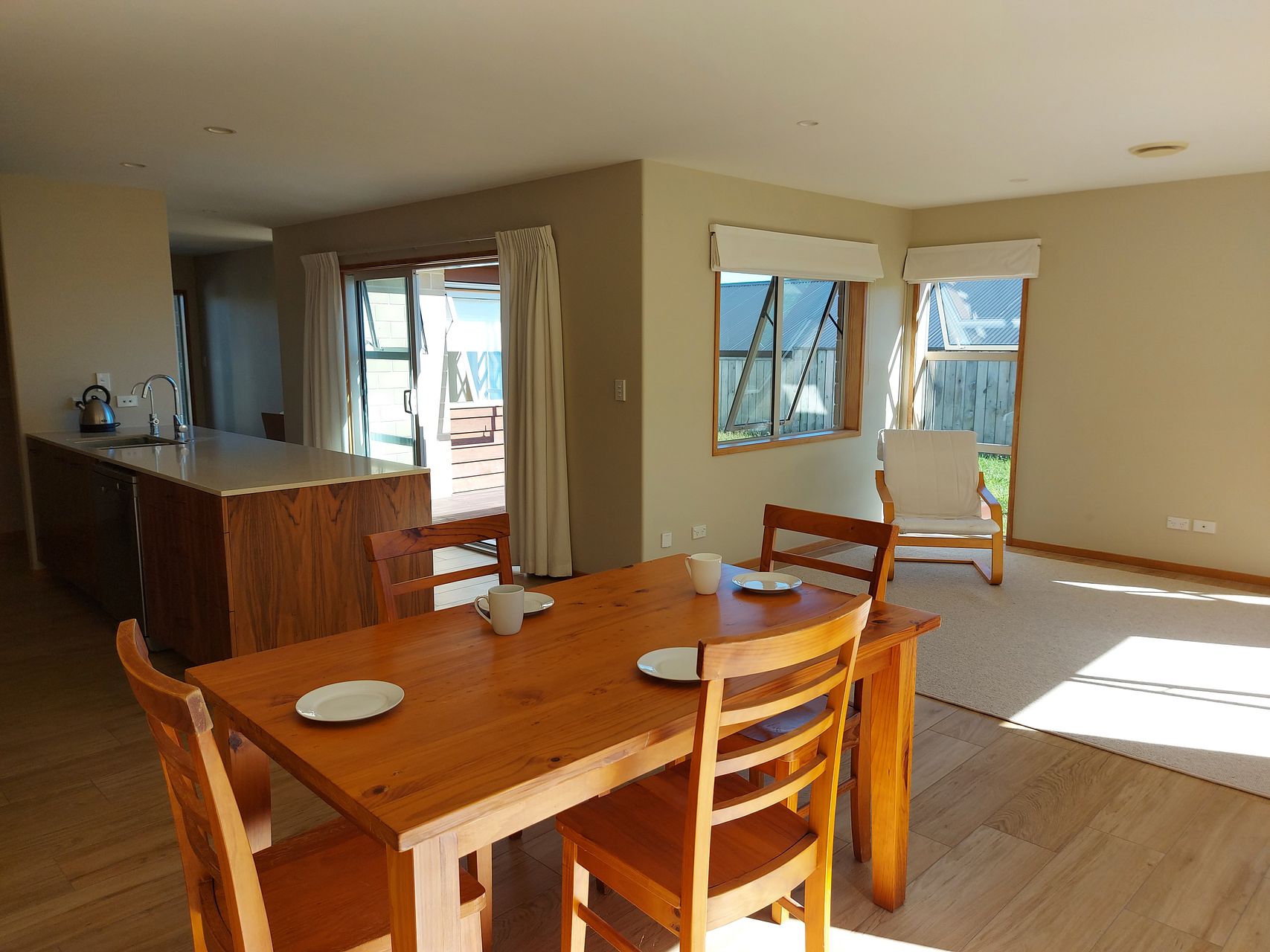 This property has 4 bedrooms all with built in wardrobes, two separate living areas with custom made rugs, open plan kitchen/dining, and terrific flow from indoor to outdoor living areas – there is plenty of space.