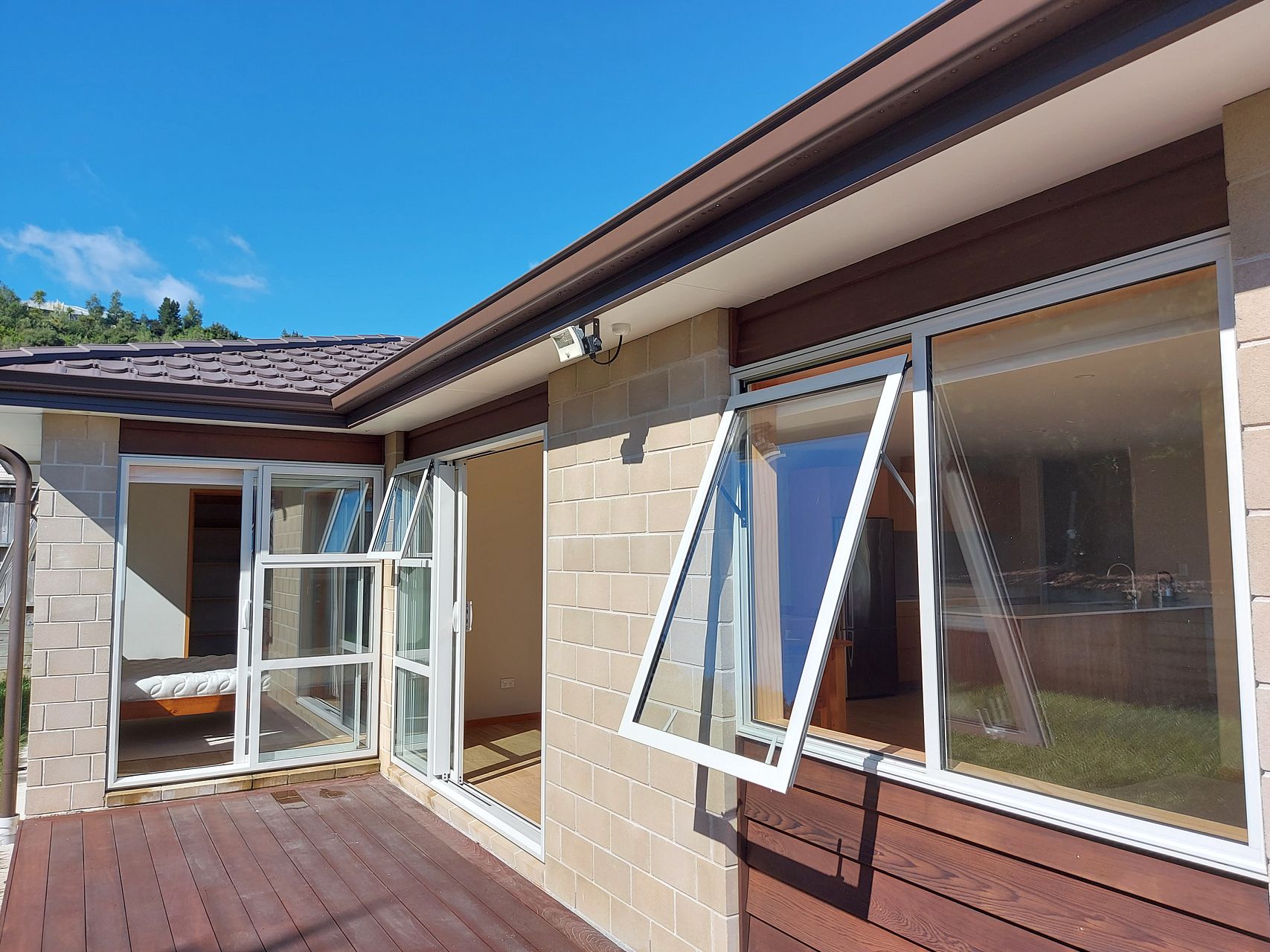 Outdoor living areas with two heartwood decks allow sanctuary to chill out and enjoy an al fresco evening meal either in the afternoon shade or sun as you please with a serene outlook of the land and garden surrounding the home.