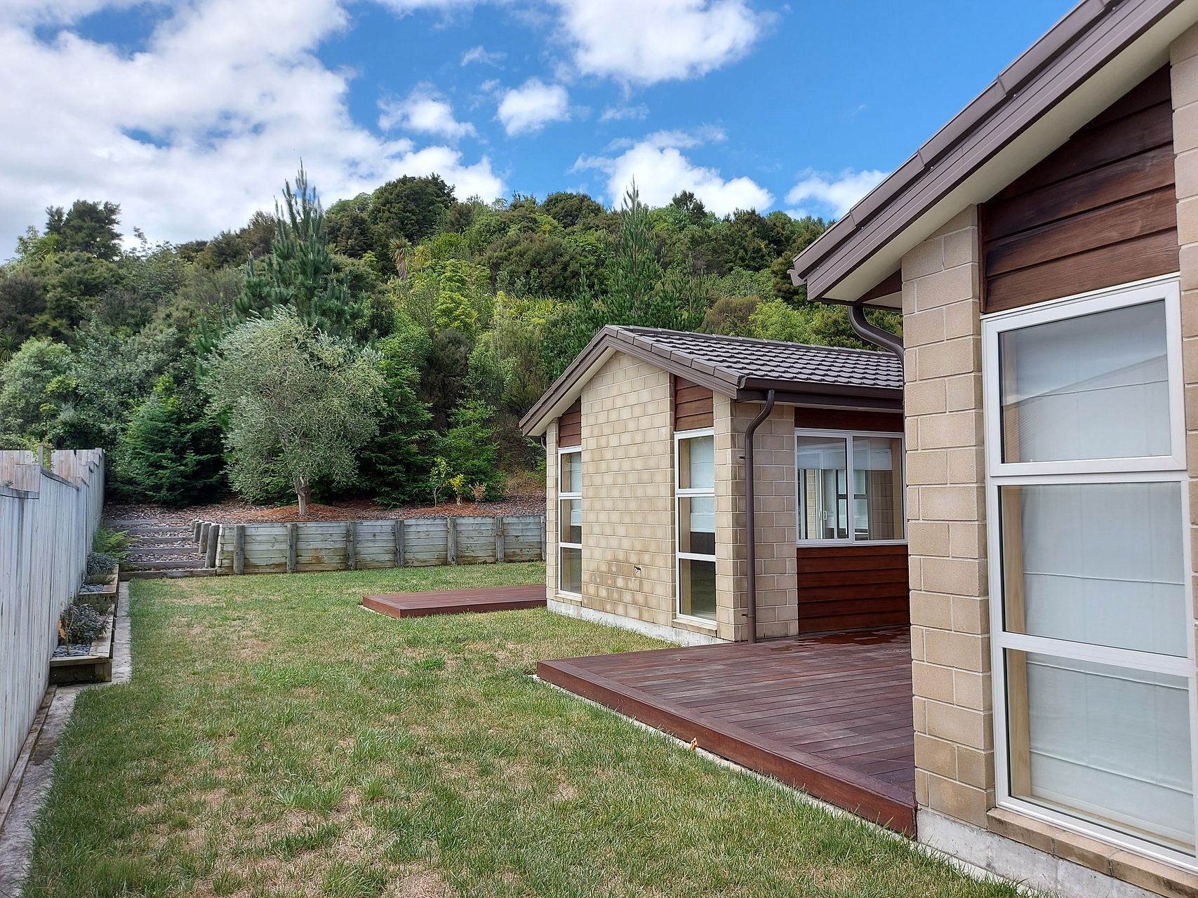 The land has an open design, with plantings in retained spaces. The spacious lawn areas have sprinklers on timers, water contributions will be made by the owner. The garden and lawn maintenance is included and done fortnightly.
