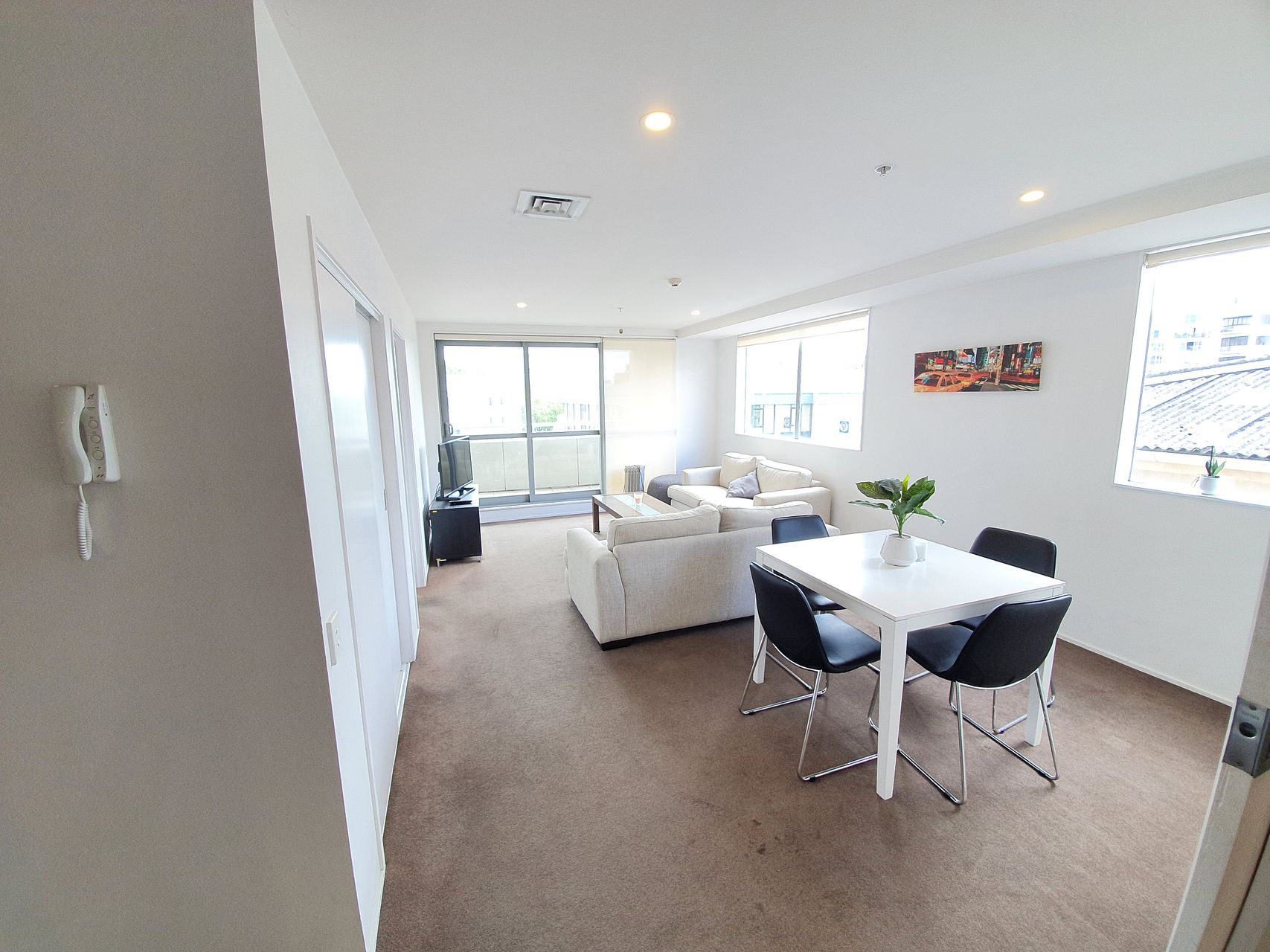 Enjoy this luxury two bedroom apartment conveniently located on the city fringe. This executive apartment has an open plan kitchen and living area with floor to ceiling sliding doors.. The modern kitchen offers quality fixtures and fittings including a oven/microwave, hob, dishwasher and fridge.