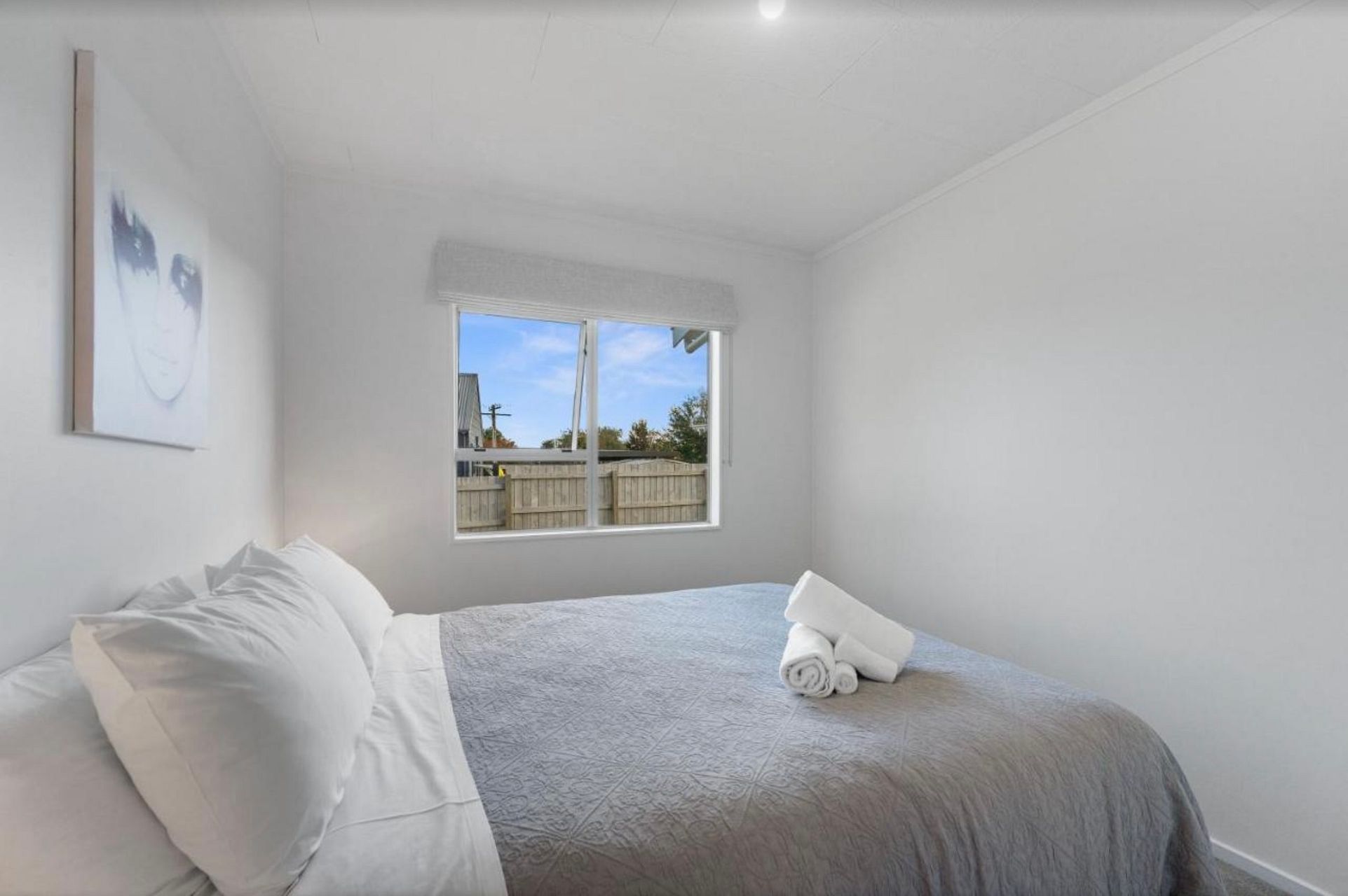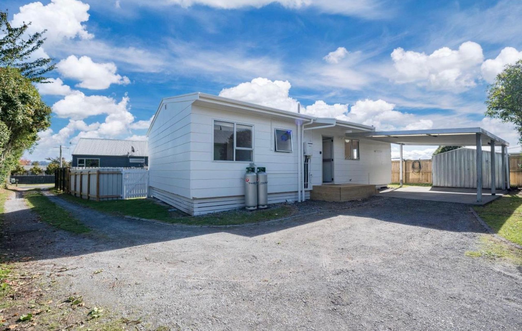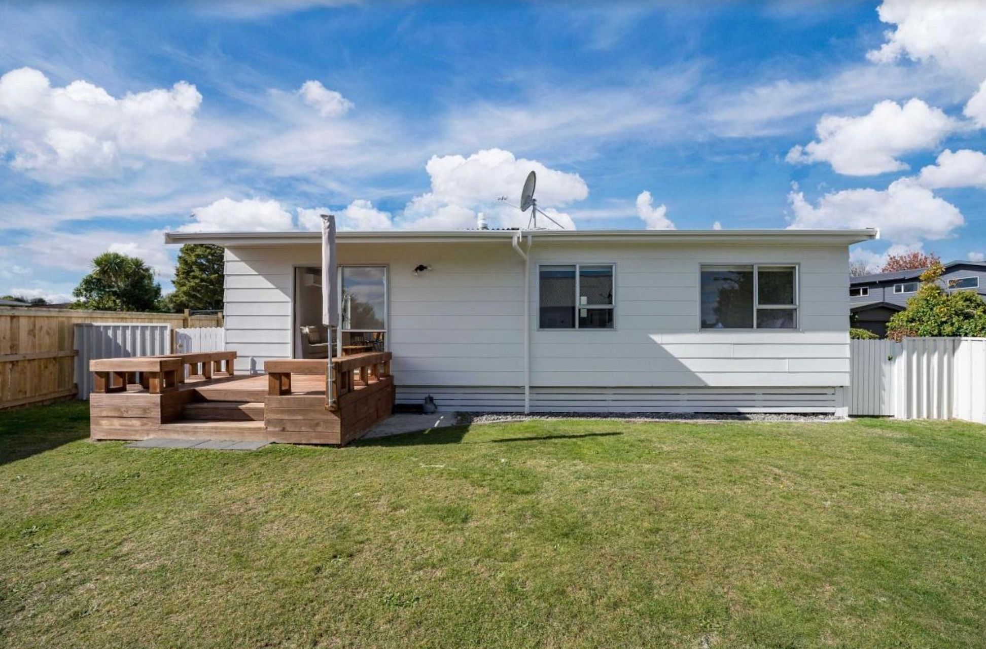 It’s a very sunny little home with everything you need, fully equipped kitchen, washing machine, dryer , small garden shed for bikes, sunny little deck and good size back yard…