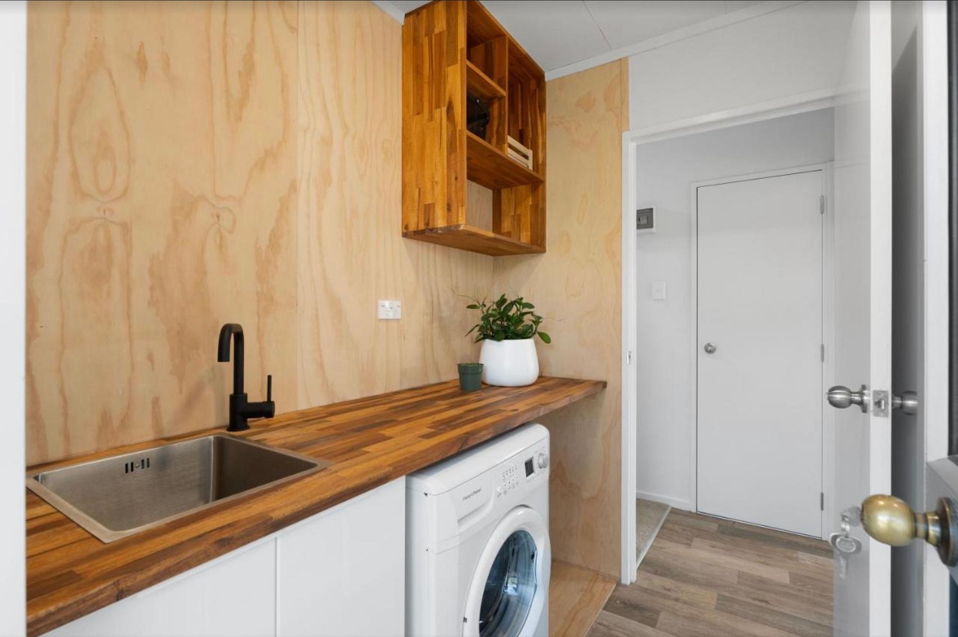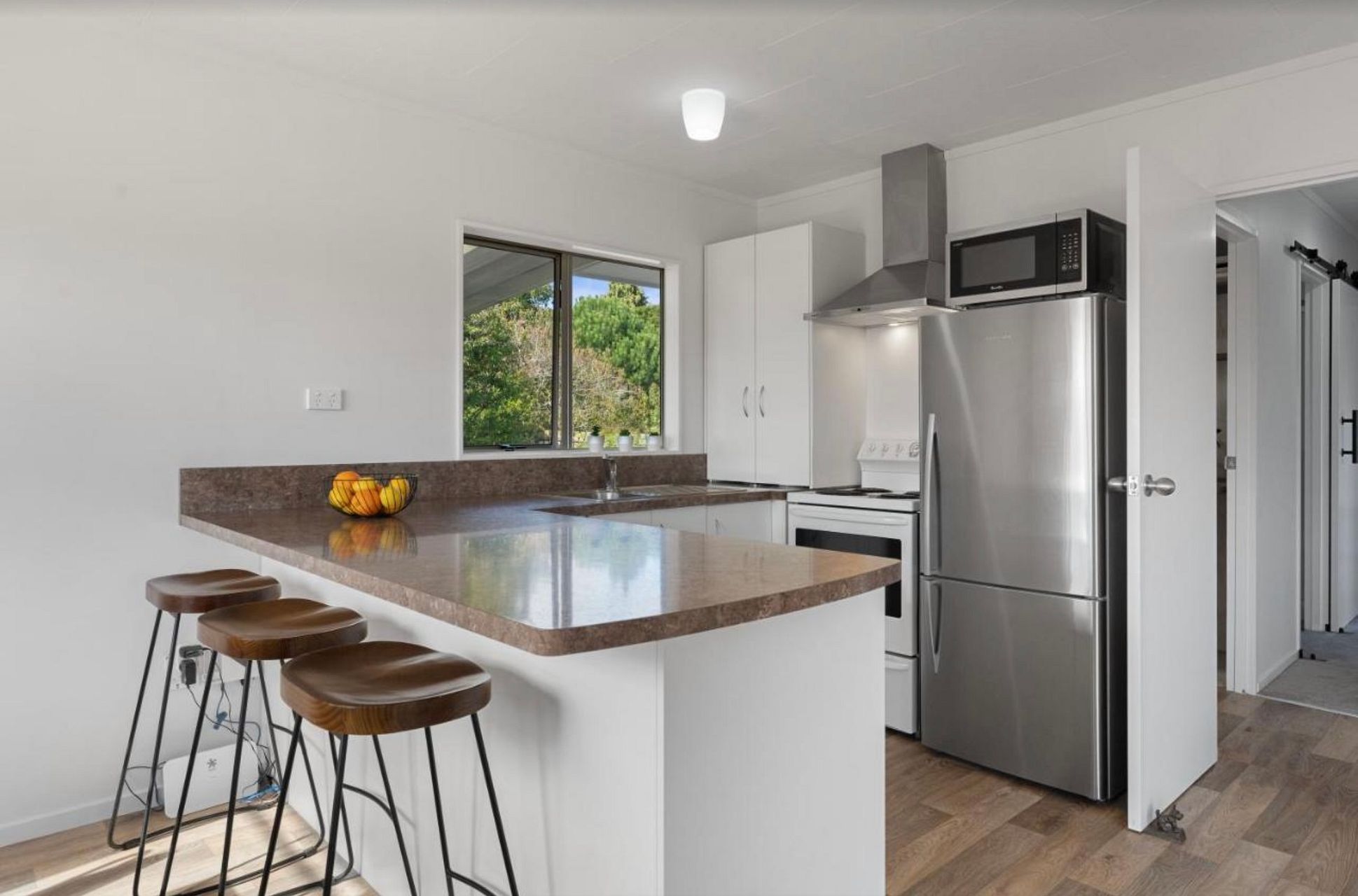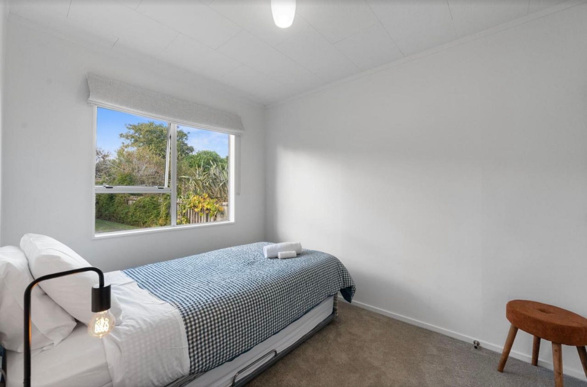 It’s a very sunny little home with everything you need, fully equipped kitchen, washing machine, dryer , small garden shed for bikes, sunny little deck and good size back yard…