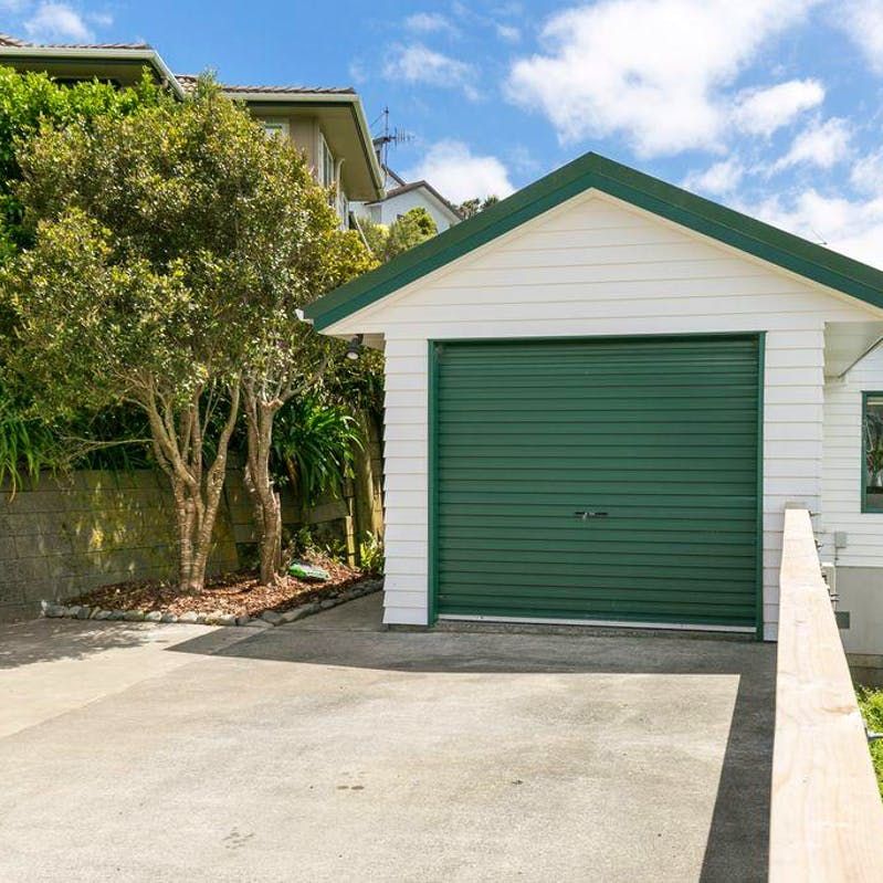 -Single-car garage with covered access and space for two cars in the flat driveway
