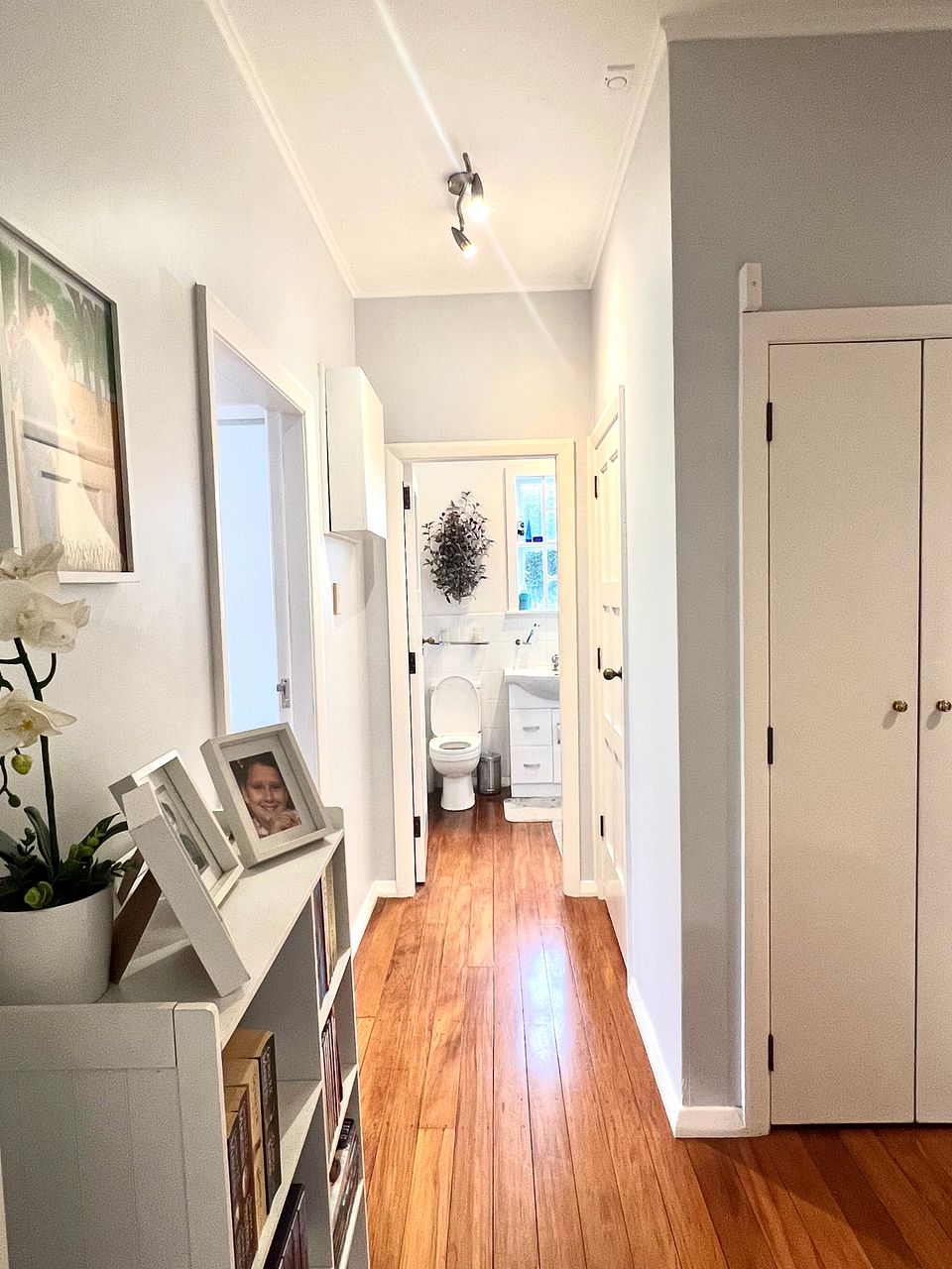 There are 3 bedrooms each with their own build-in wardrobe, 1 bathroom that has a shower and a bath, and 2 extra cupboards in the hallways.