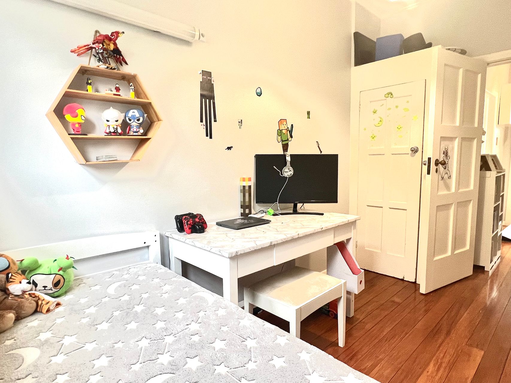 Just below the deck, there is a covered parking area, as well as a storage room, and then also another laundry room (which is currently being used for the children’s lego play area).