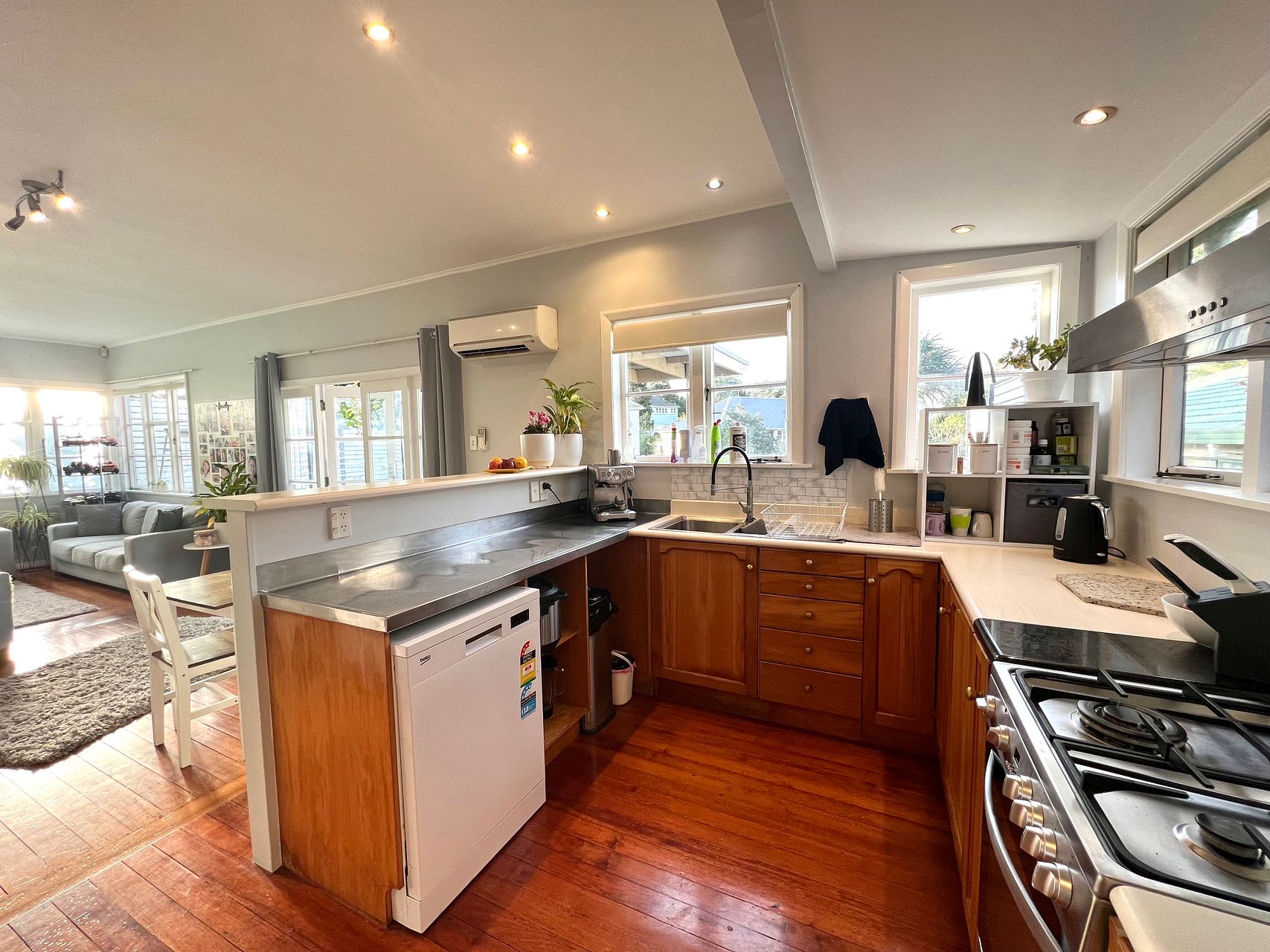 In the open-plan kitchen-living room, you will find nearly wall-to-wall windows which will stream in sunlight during the day.