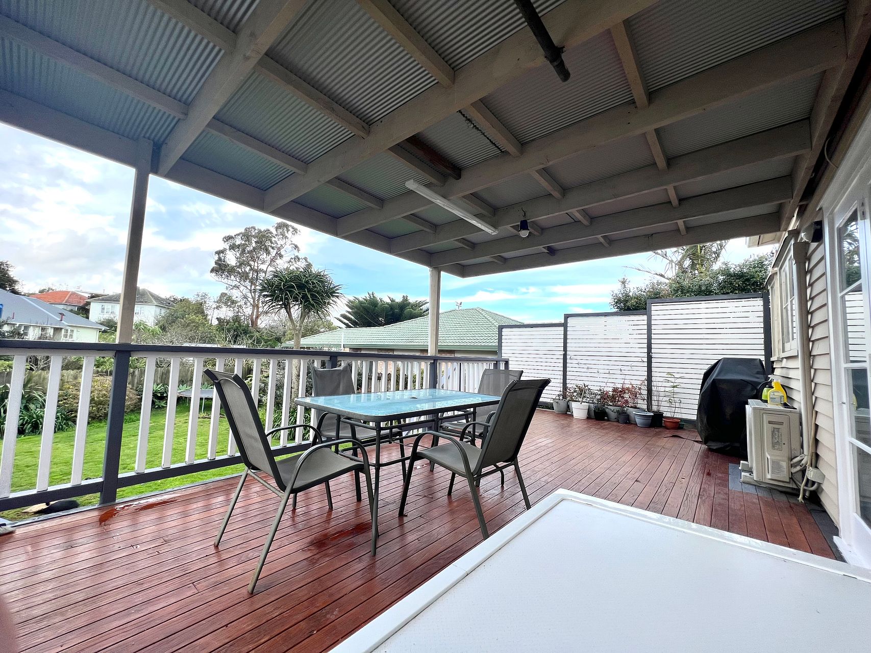 The deck is half-covered, enough for you and your family to be out of the direct sun, yet has enough open deck for you to catch some rays while you cook up a BBQ.