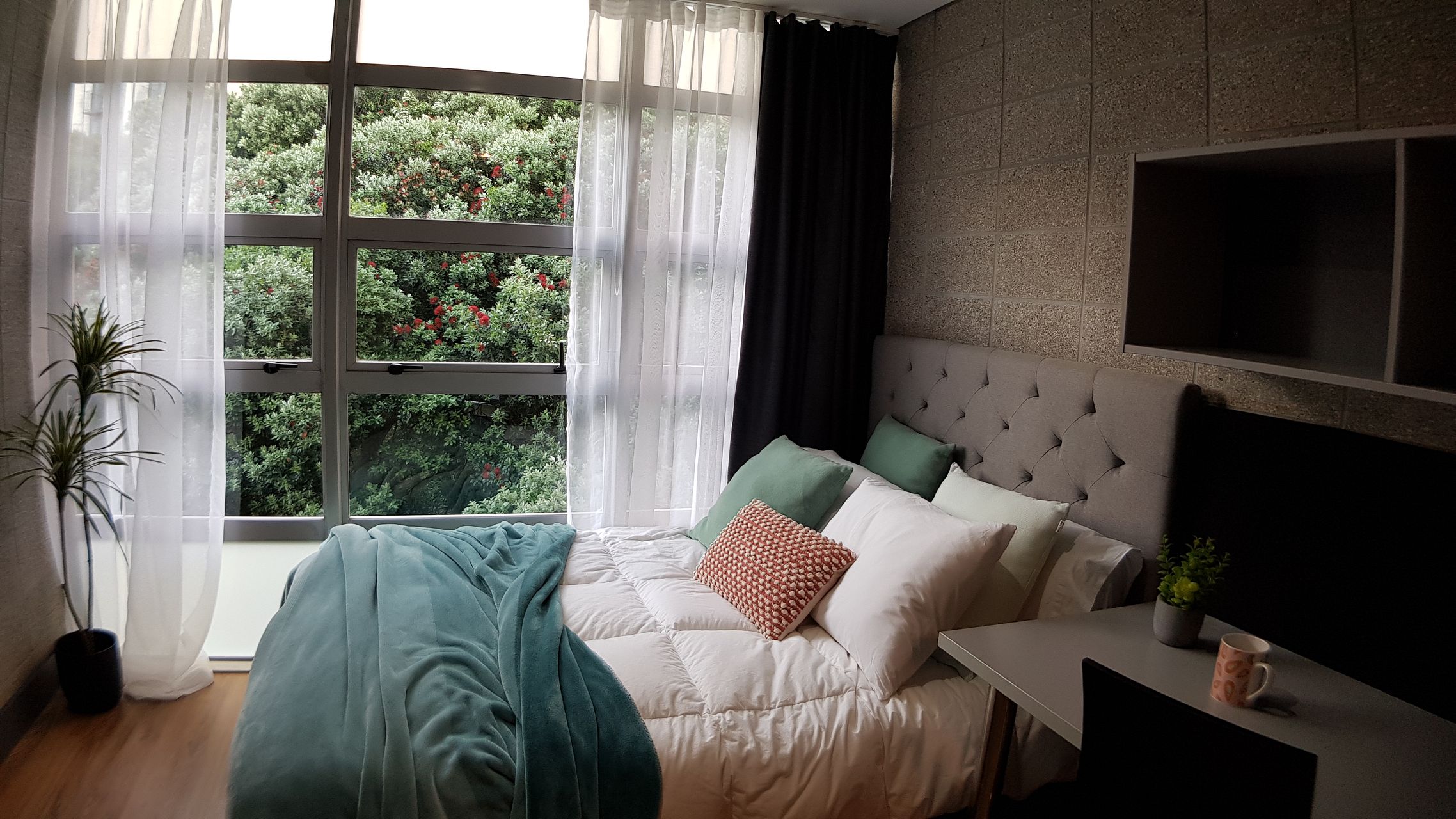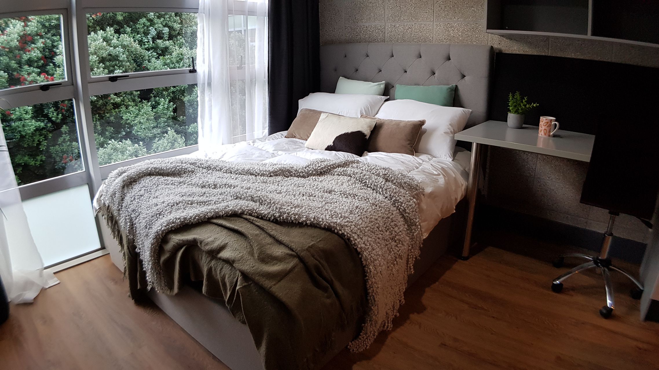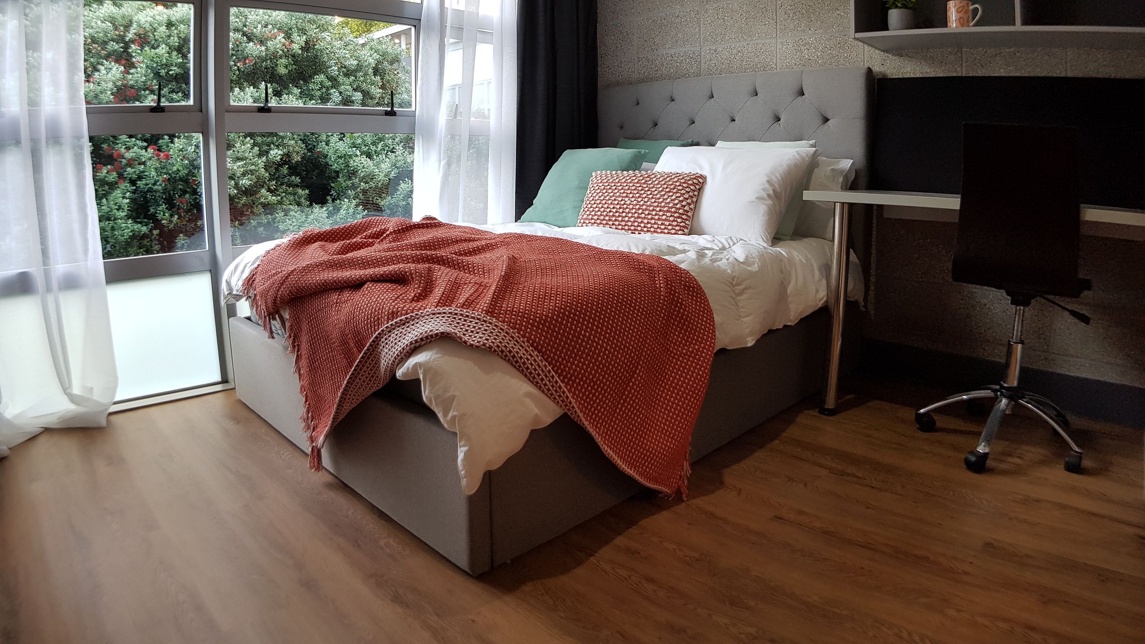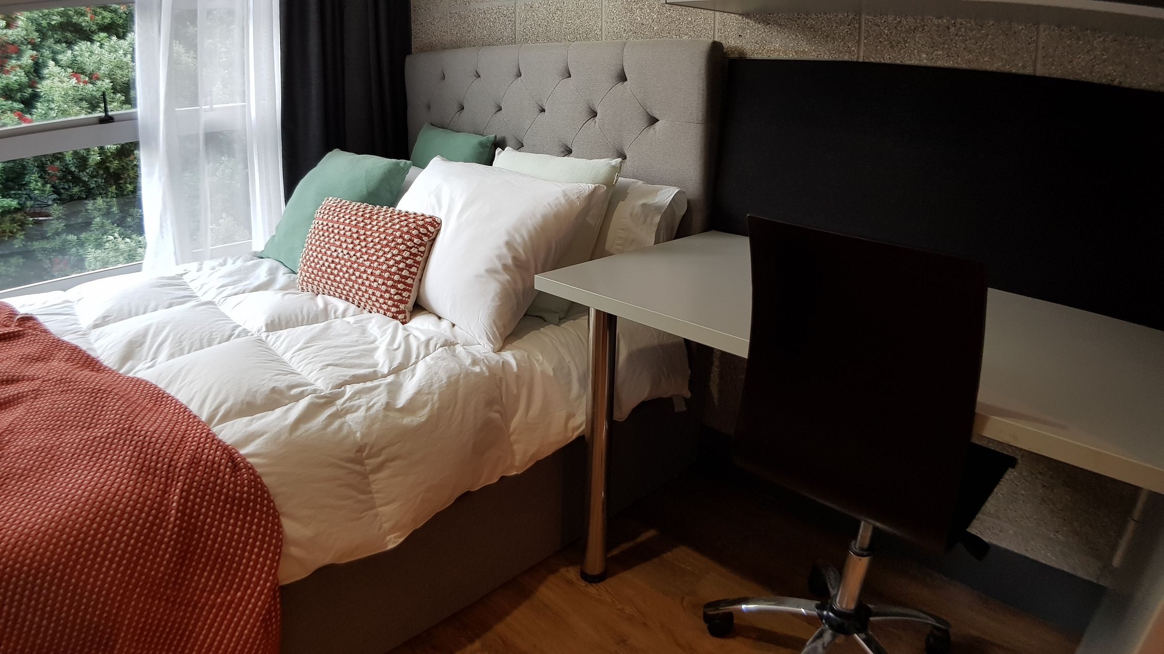 Furnishing: king single bed, large wardrobe, study desk & study chair, flat-screen TV (wall mounted), wall mounted heater.