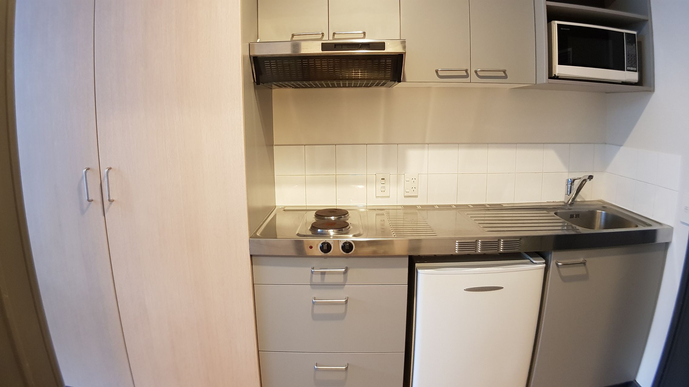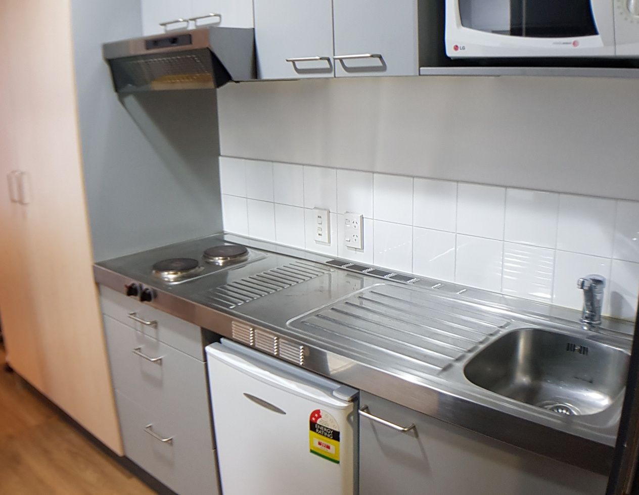 This stylish FULLY FURNISHED, freshly renovated STUDIO apartment has got: a fully equipped kitchen with a cooktop, range hood, fridge with freezer, and microwave. Self-contained bathroom with shower, toilet and bassinet.