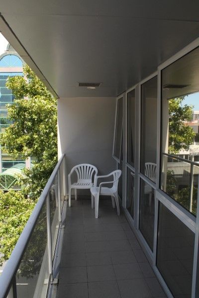 Body Corp rules prohibit permanent balcony furniture, smoking or pets.
