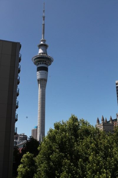 Large, sunny, north-facing balcony looking to Sky Tower.