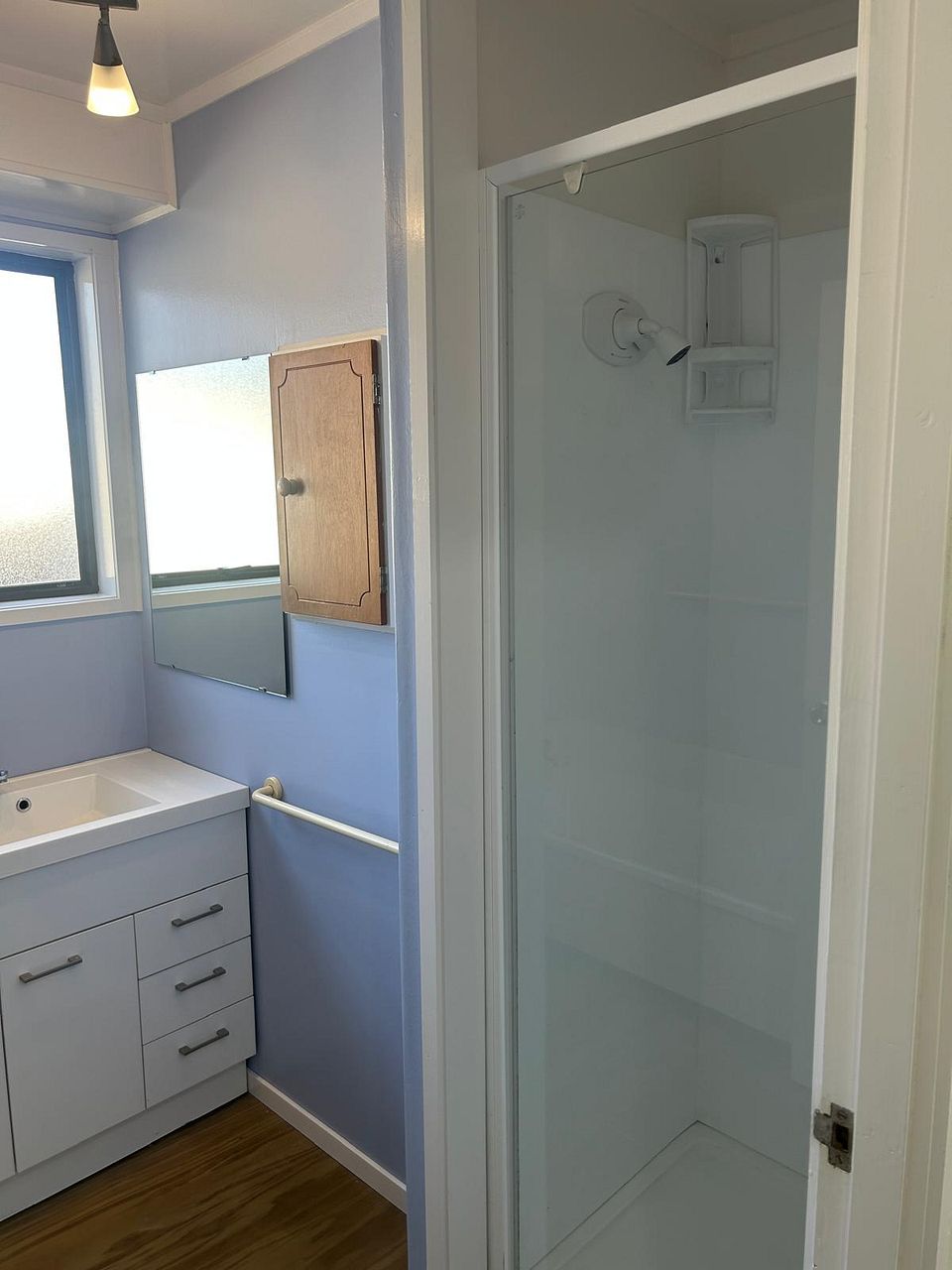 The house has a separate shower and bath. The toilet is also separate from the bathroom.