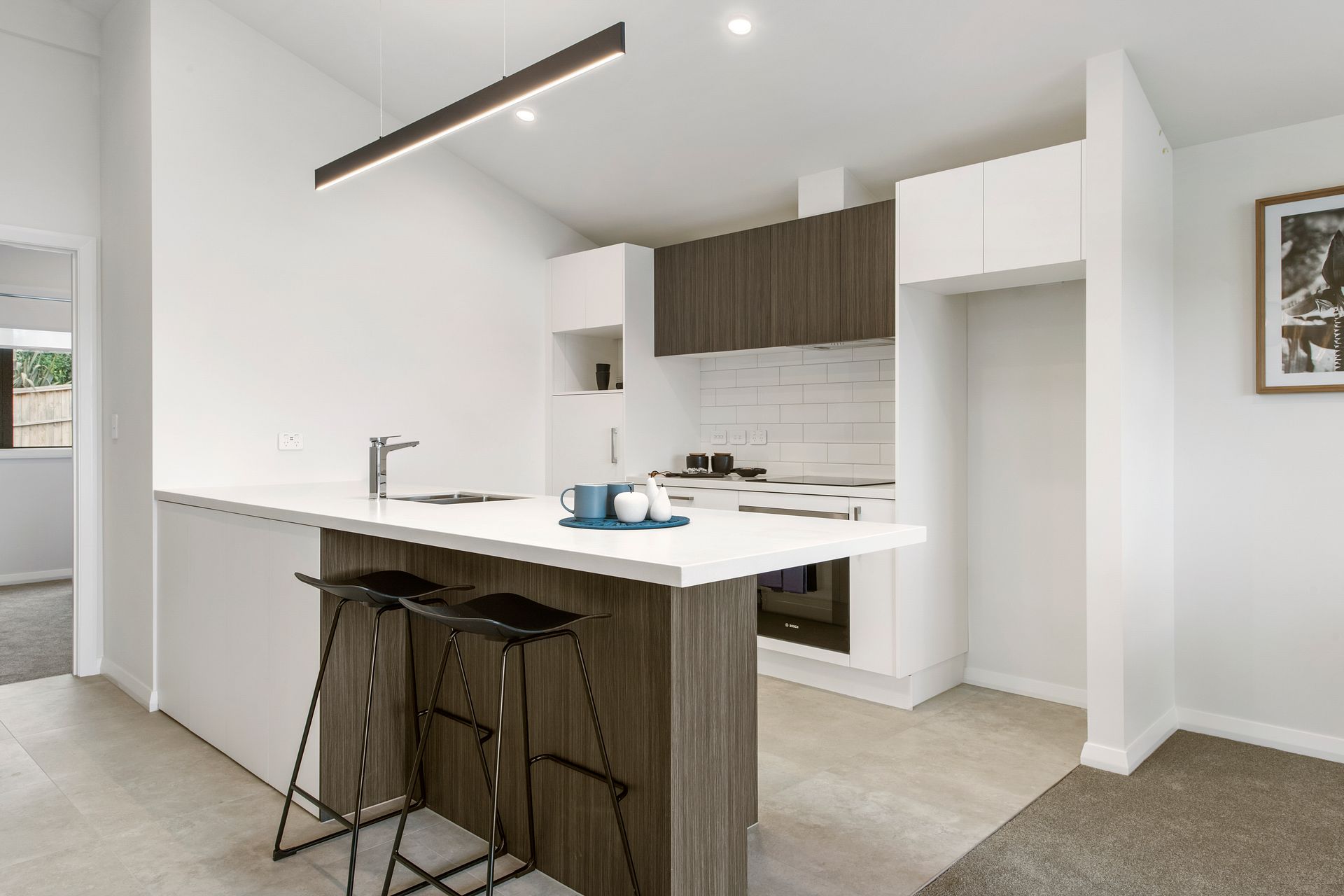 Step up a level and you'll walk into the spacious open-plan living, with balcony, designer kitchen, then retreat into your master bedroom with ensuite, or work at your conveniently placed computer nook.