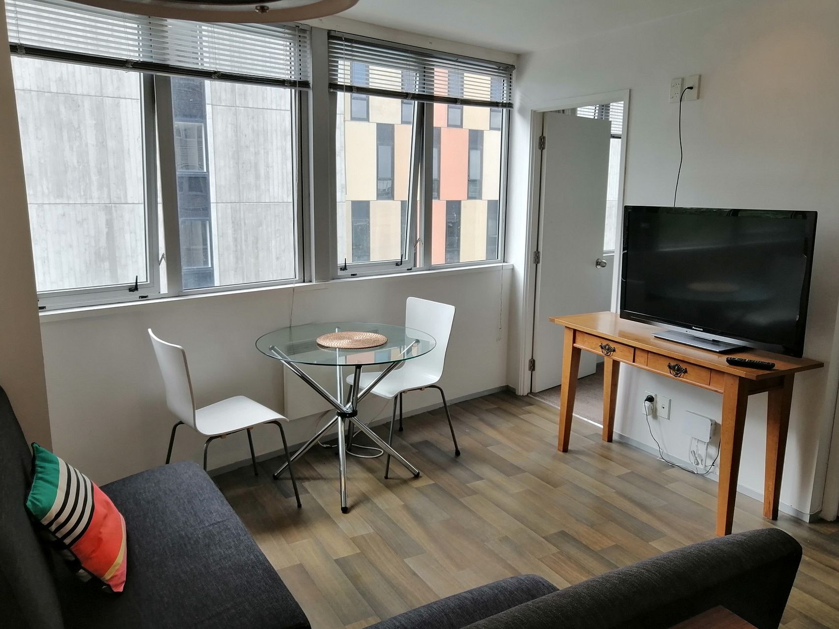 One bedroom APARTMENT WITH LOTS OF NATURAL LIGHT. Easy clean timber floor in kitchen and lounge. Venetian blinds all rooms for privacy and to keep cool in summer.