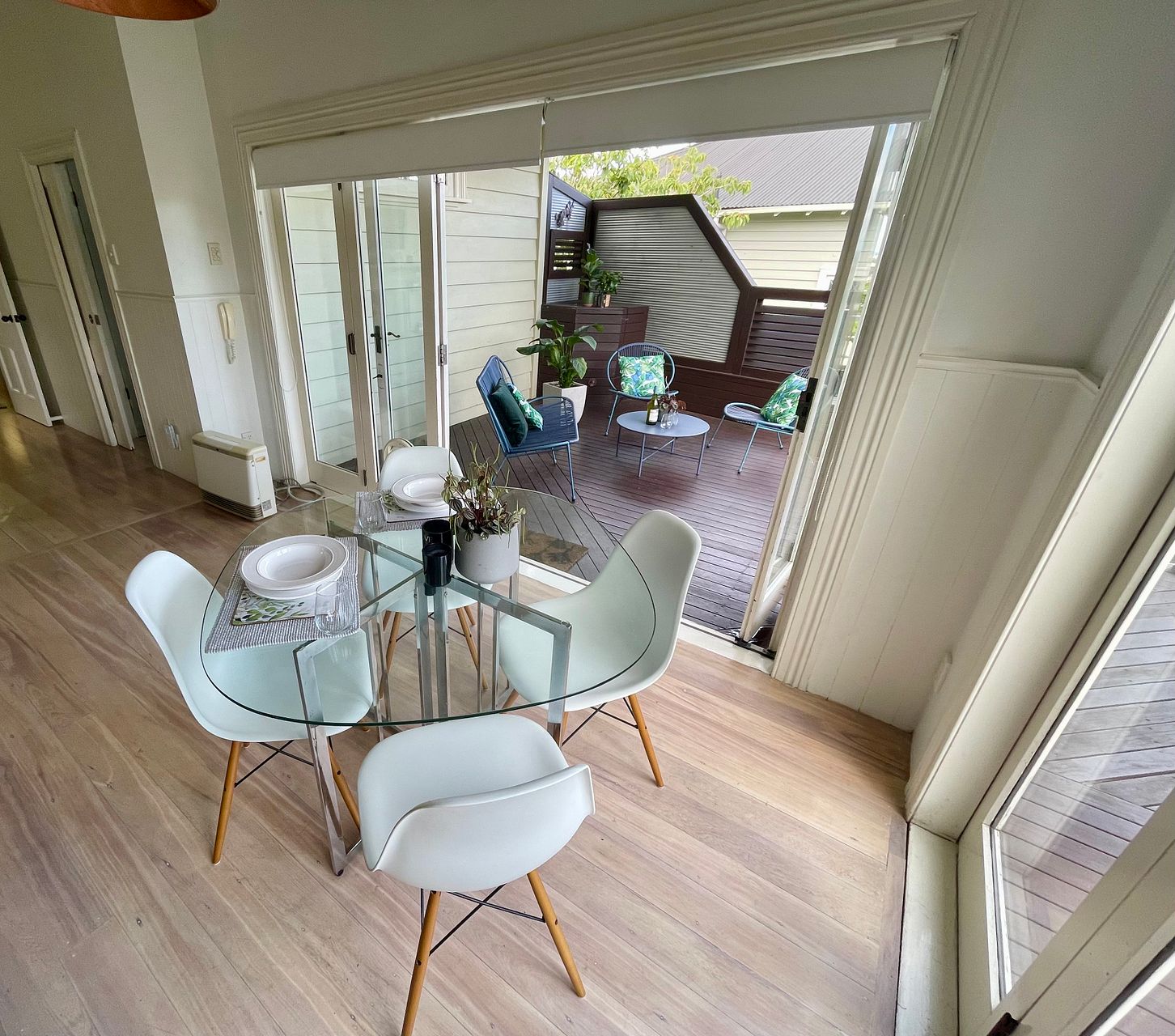 The house boasts an array of features including a security alarm system for peace of mind, a sunny balcony for your morning coffee, and built-in wardrobes for ample storage. The sheltered north west facing deck offers great outdoor entertaining options with a wall mounted heater. While the fully-fenced maintained garden provides a safe haven for children and pets. Open fire, gas heater and gas fire in the bedroom ensures your comfort during cooler months, and the electronic gate with intercom adds an extra layer of security and privacy.