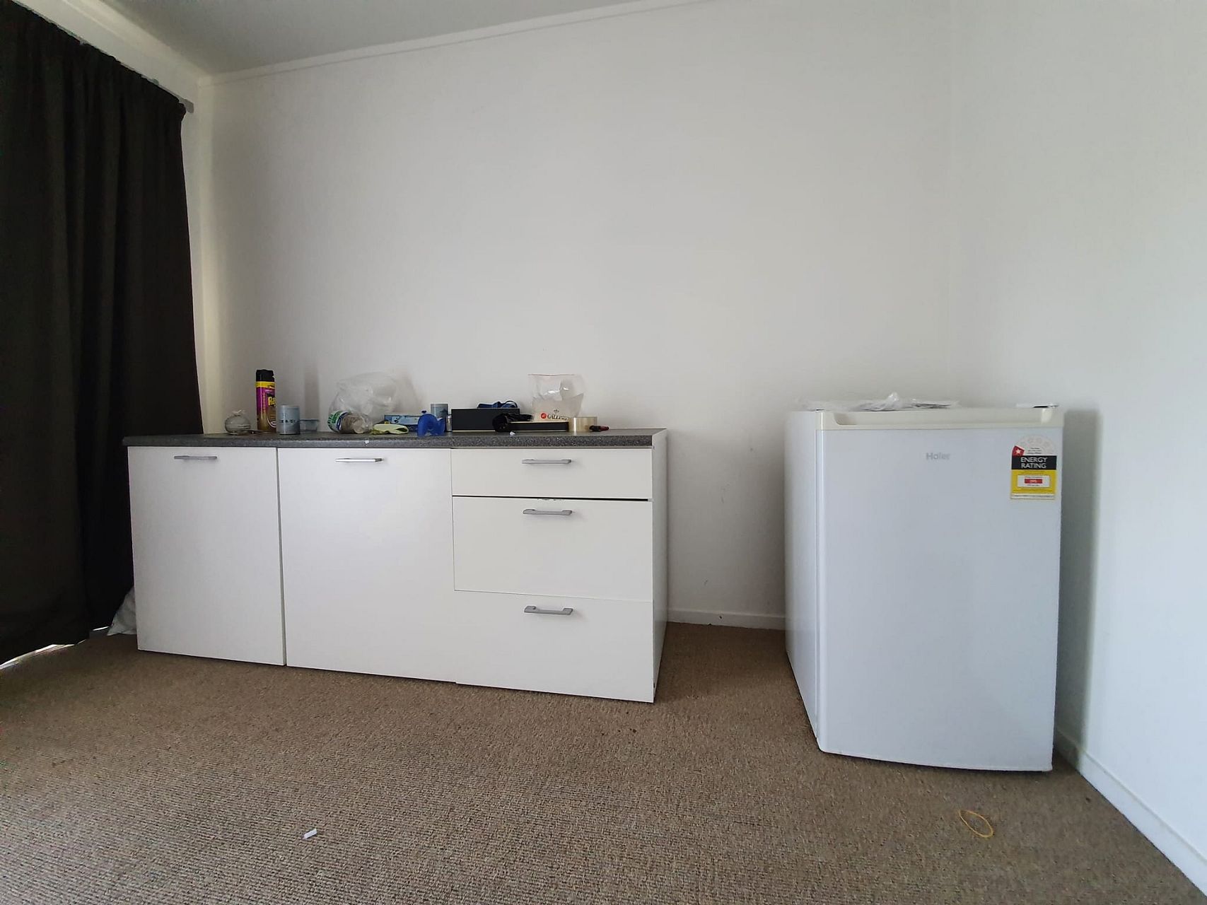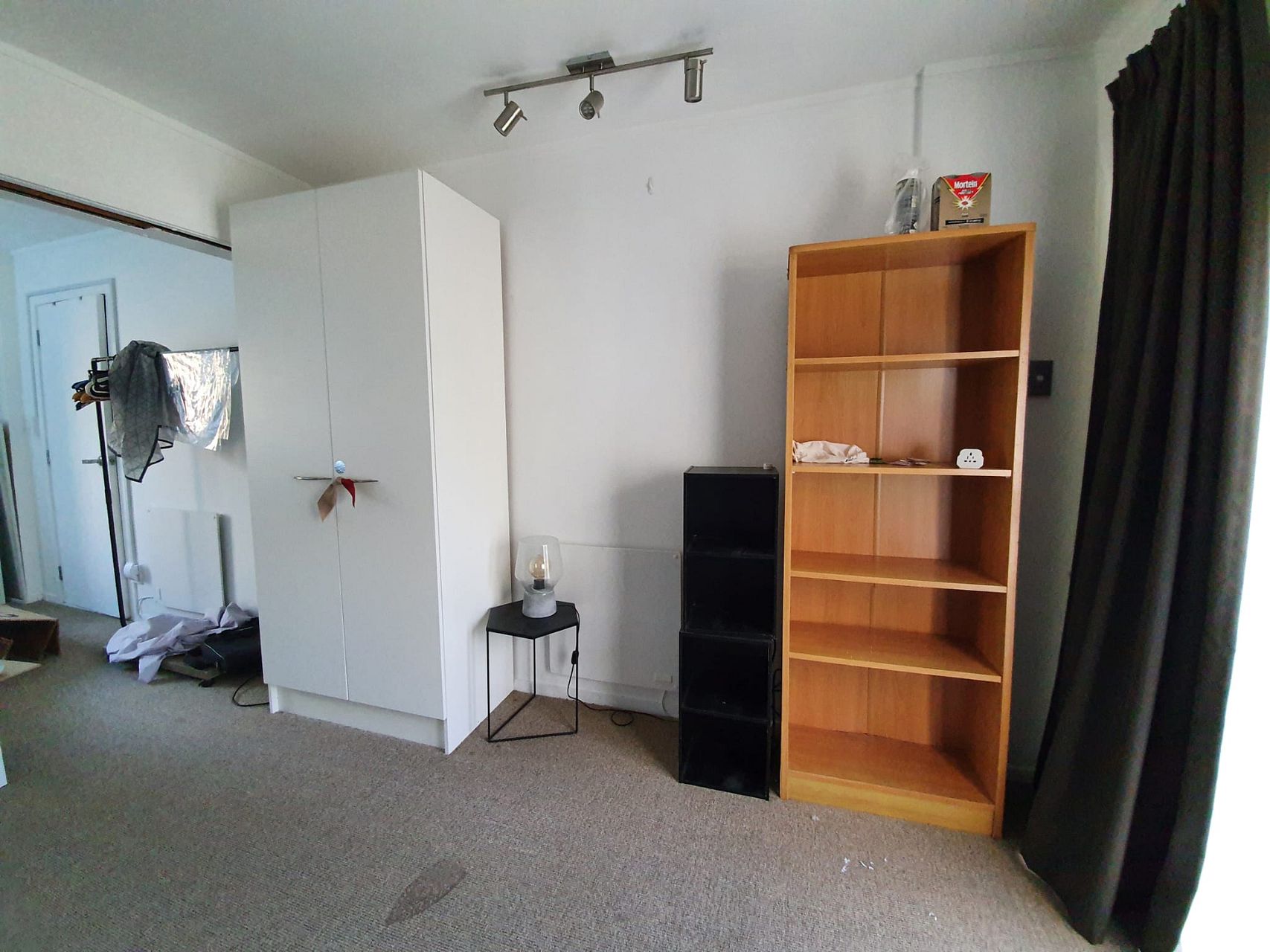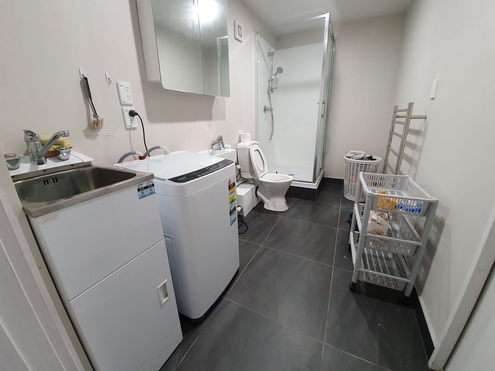 Fully furnished: Includes kitchen cabin, bookshelf, bed, study desk, office chair, wall panel heater, heated towel rack, small fridge, microwave, cooking hot plate, washing machine.