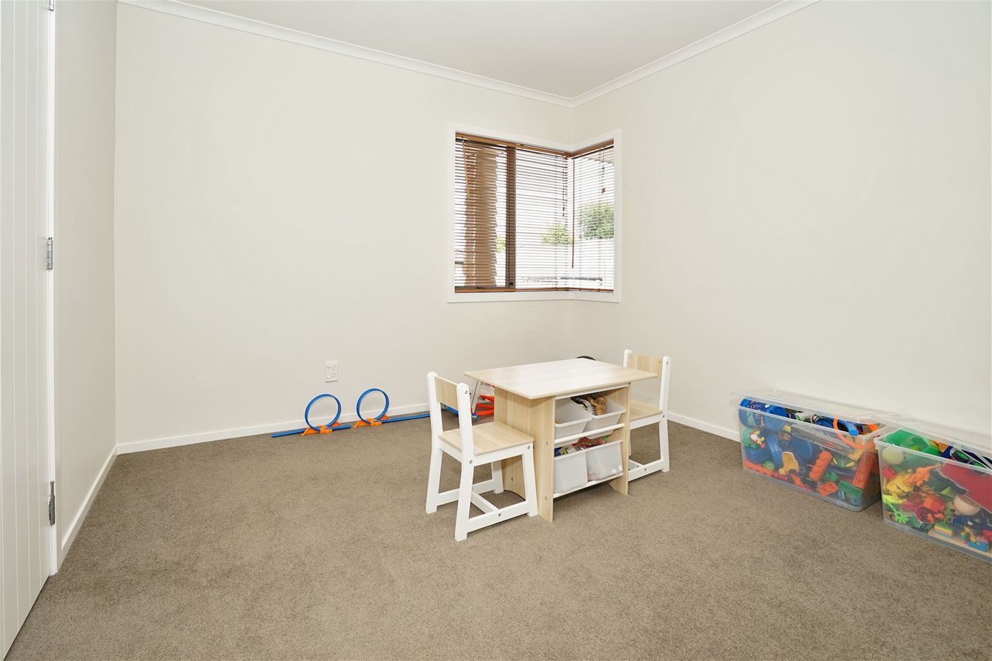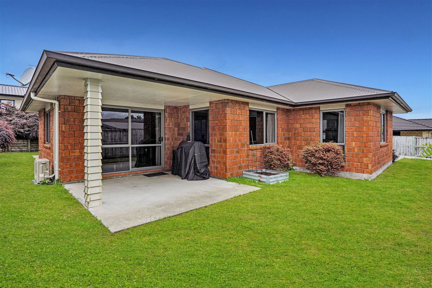 Opened planned living with kitchen, dining and small lounge are all connected. Go through the sliding door to the patio with veggie box and plenty of room to BBQ and play on a summers day. A separate rumpus can be turned into theatre room for movie nights or perhaps playroom for the kids.