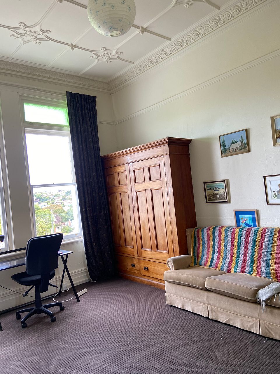 Two lovely large private rooms available now in this beautiful historic home. Suitable couple or two singles. You will occupy the whole upstairs area of the flat. Rooms can be bedrooms or one bedroom and a lounge / office. Own private bathroom on upstairs level. Downstairs share large kitchen, laundry and living area with 4 other young professionals. (This is a huge house so you don’t need to worry about it being crowded). Rent is $360 per week for two rooms or $190 for one room. Power and broadband are included.