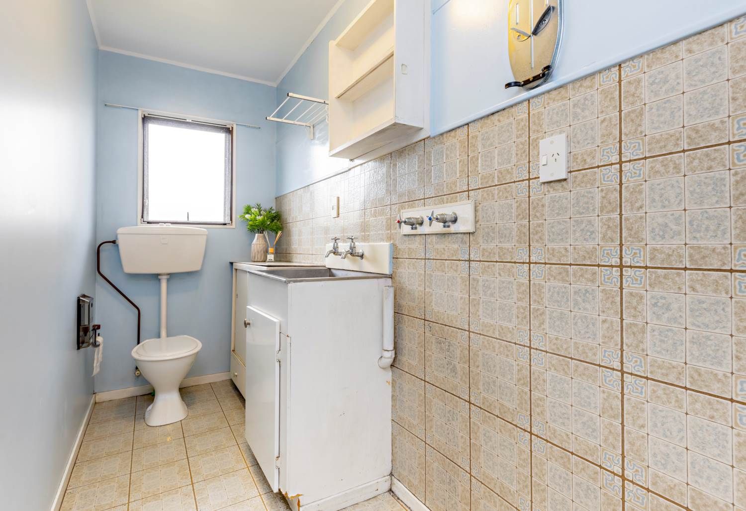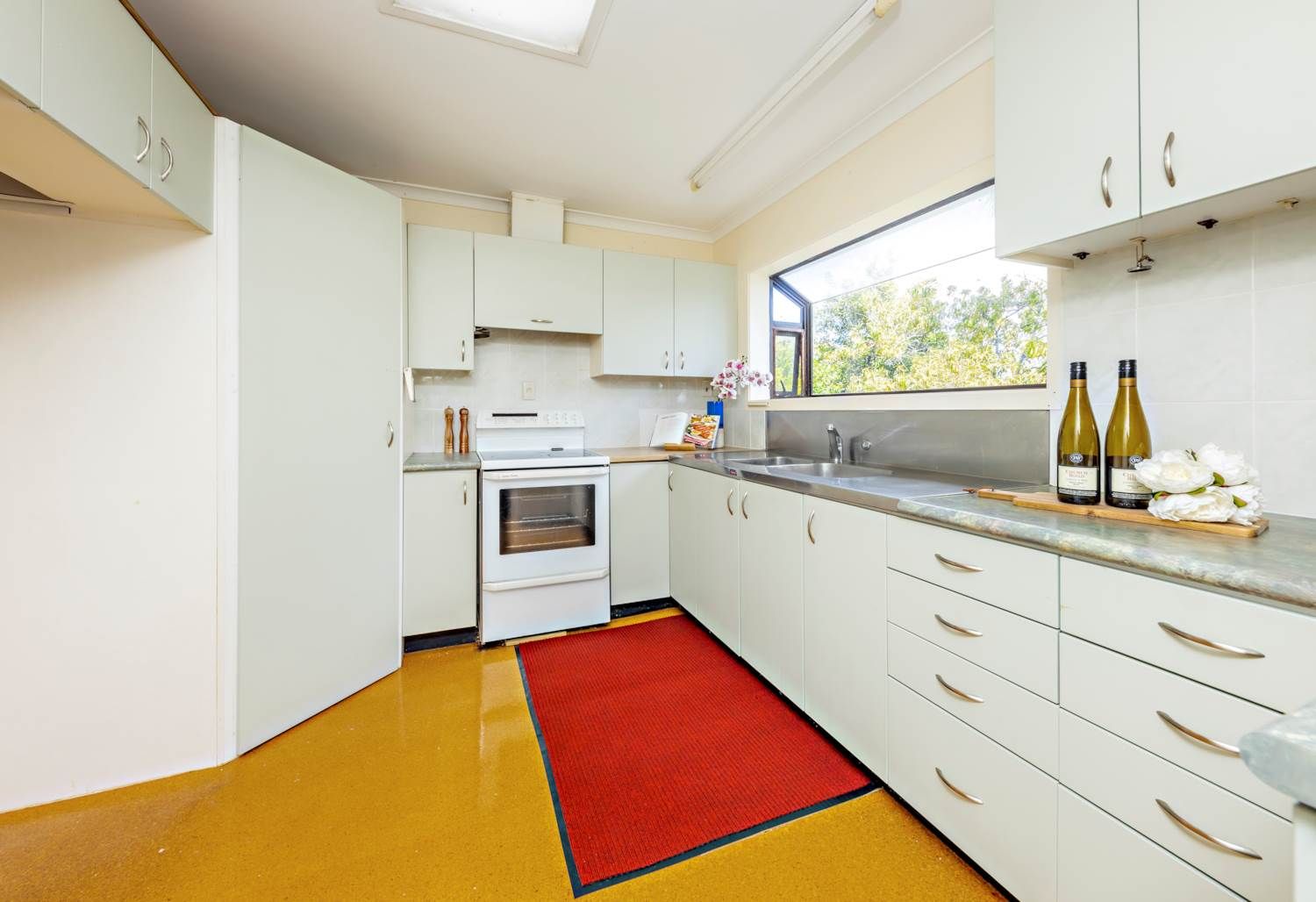 This is three bedrooms one bathroom and a kitchen connecting to the family lounge with single garage. The beauty of this home is the privacy and serenity of its position behind a fenced driveway.
