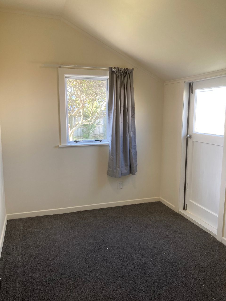 One spacious master bedroom with french doors, and one smaller single bedroom. There's also a sunny space that could be used as an office, play space or sun room.
