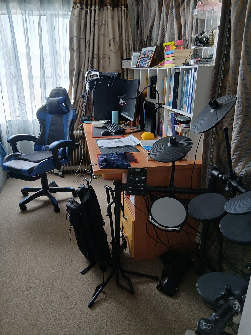 2 double beds, 1 single bed, marble island dining table & bar chairs, 2 desks, 2 fridges, washing machine, microwave, oven, and a brand-new stove. Built-in wardrobes included.