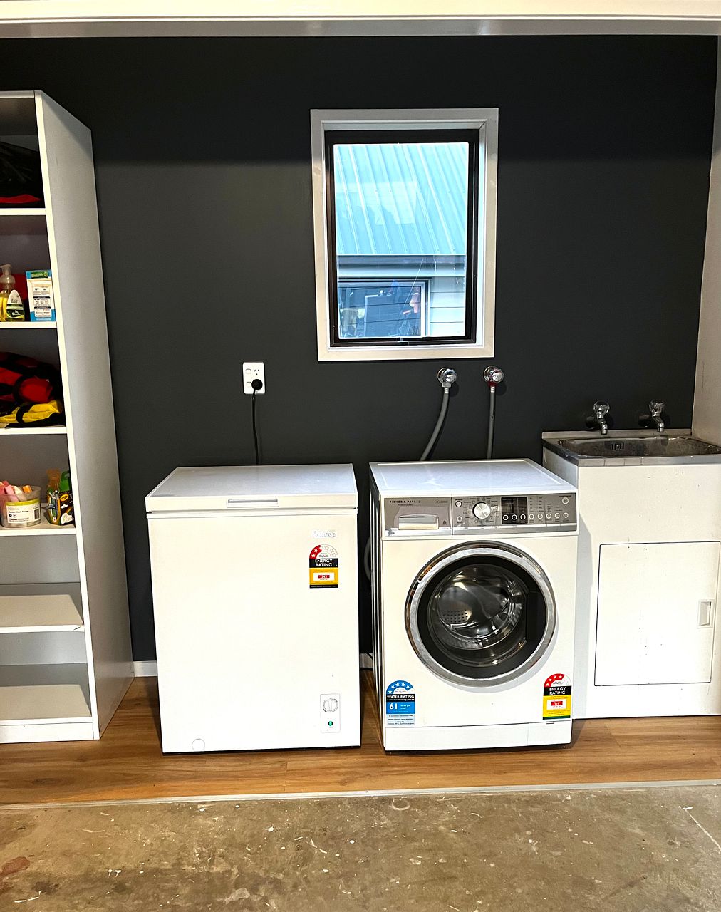 - Laundry with basic cabinet and wash tub