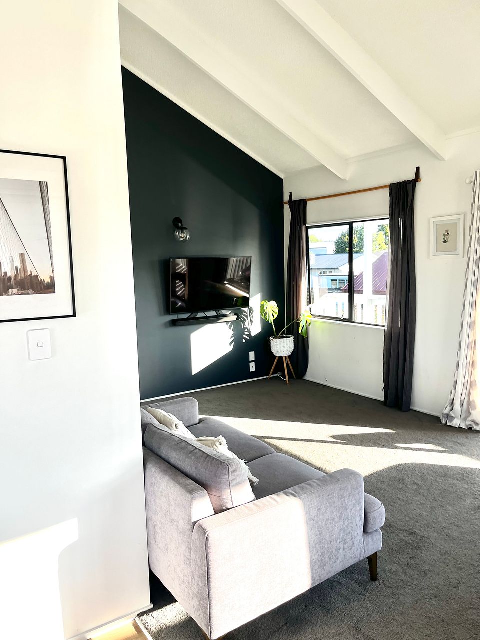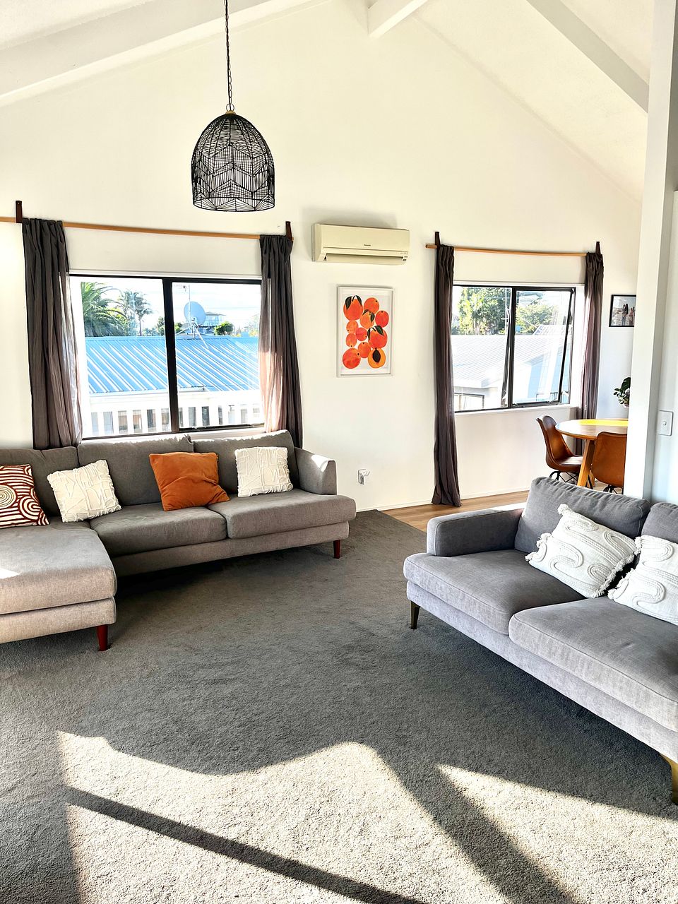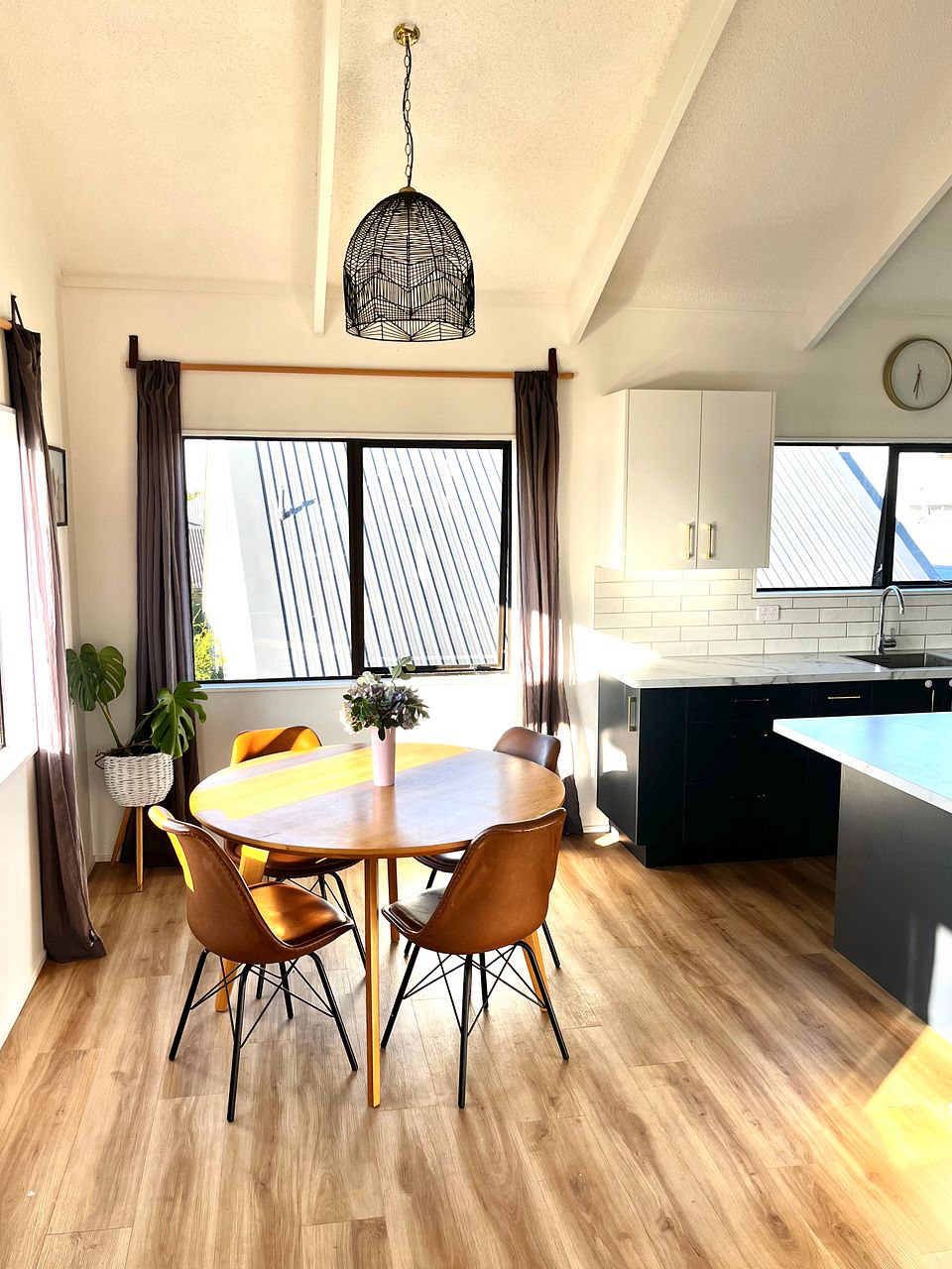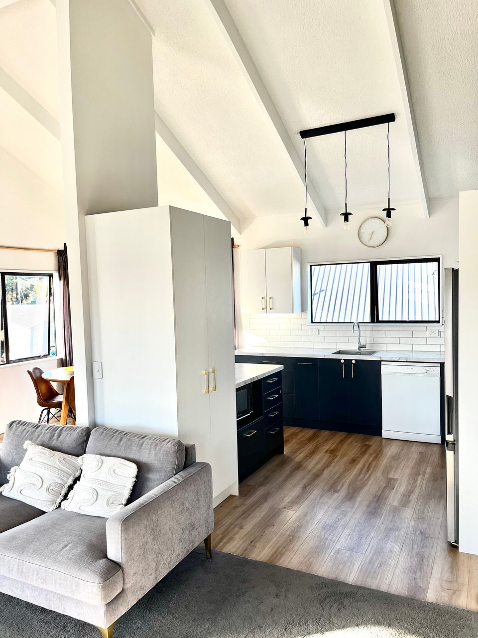 - Upstairs has a sunny kitchen, dining and lounge area