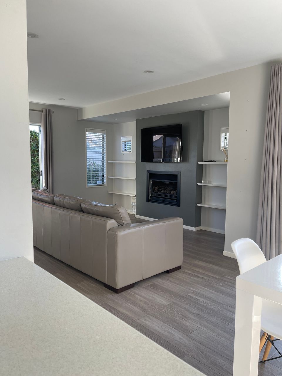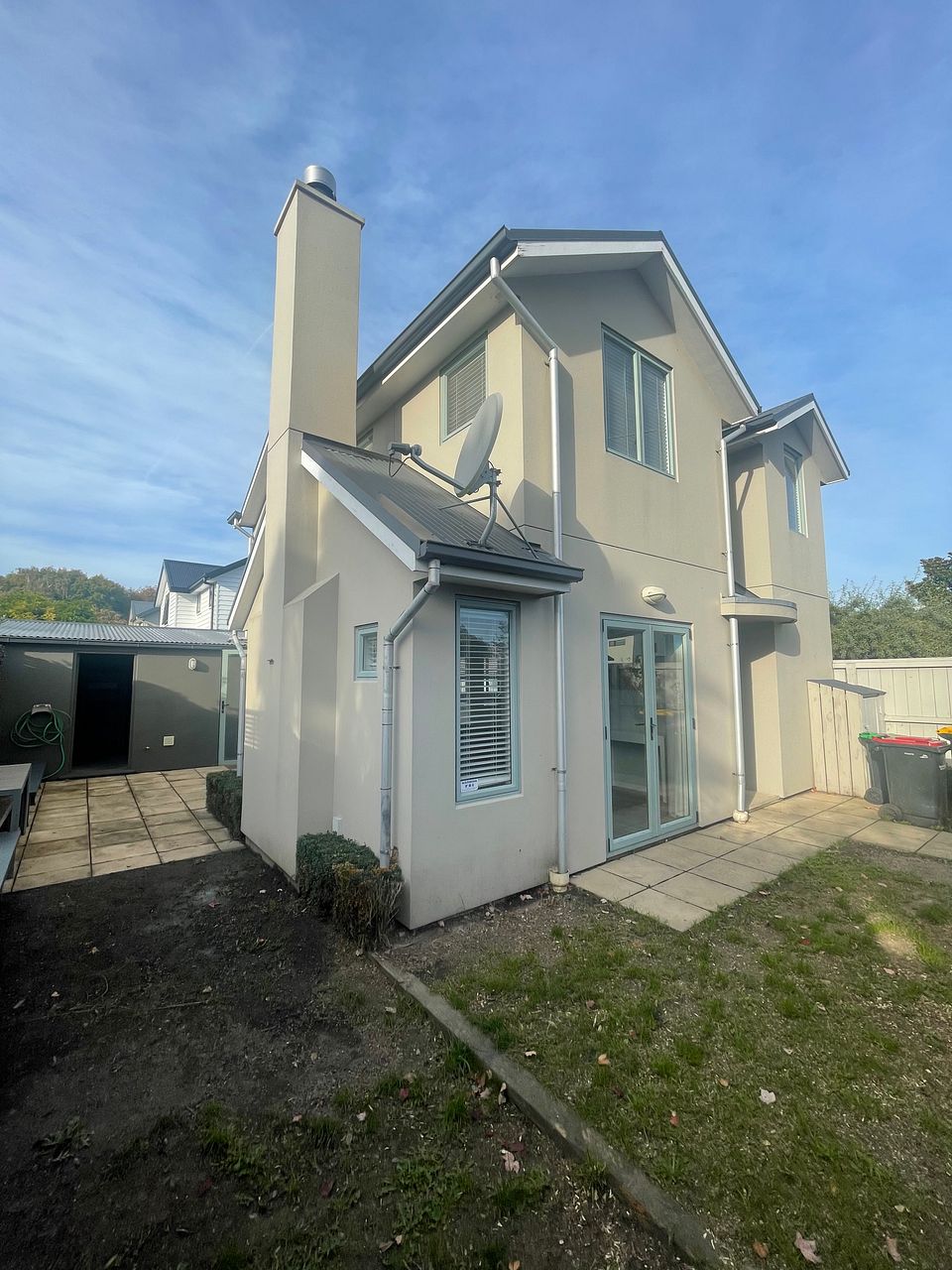 Sunny, spacious 2 bedroom townhouse with 1 luxury bathroom upstairs and small bathroom downstairs. Open plan living dining kitchen, heat pump and gas fire