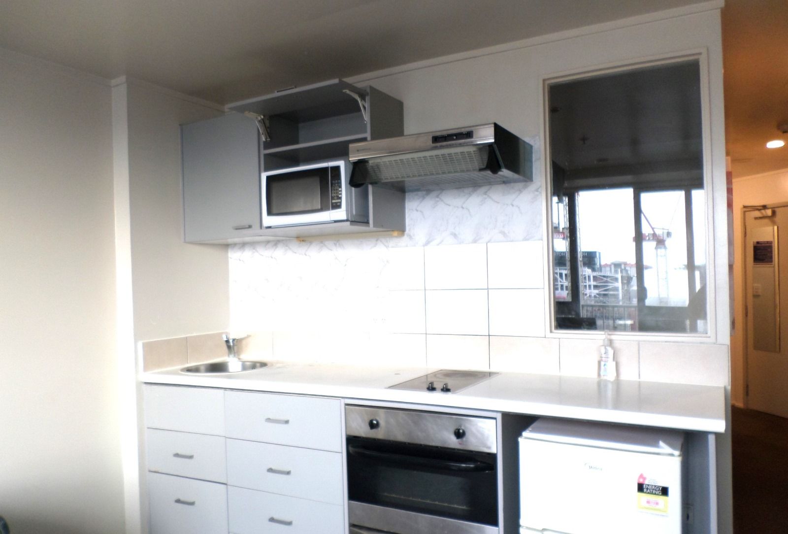 Features: open-plan living/kitchen area, views of the harbor, and a nice small balcony to enjoy the morning sun.
