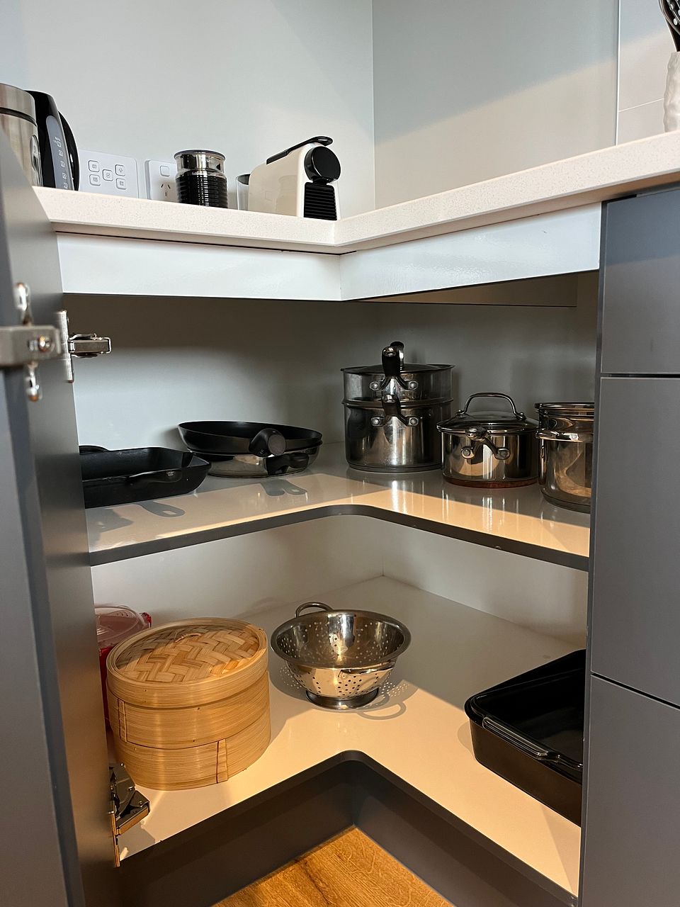 Laundry in a concealed cupboard in the bathroom