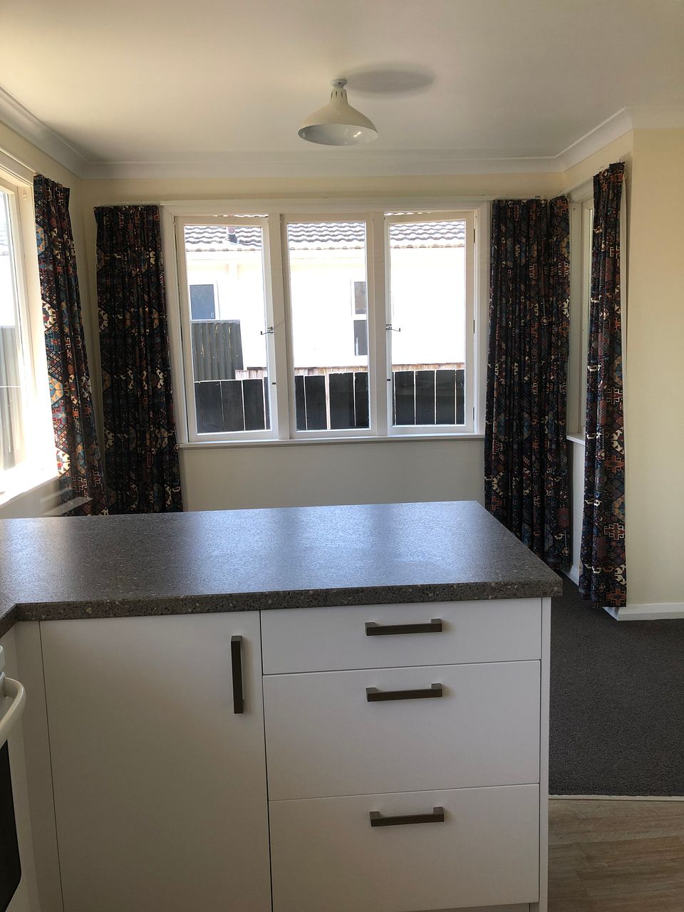 Modern kitchen and bathroom ,free standing shower, separate laundry , good drapes, carpeted dining, hall , lounge ,bedrooms.