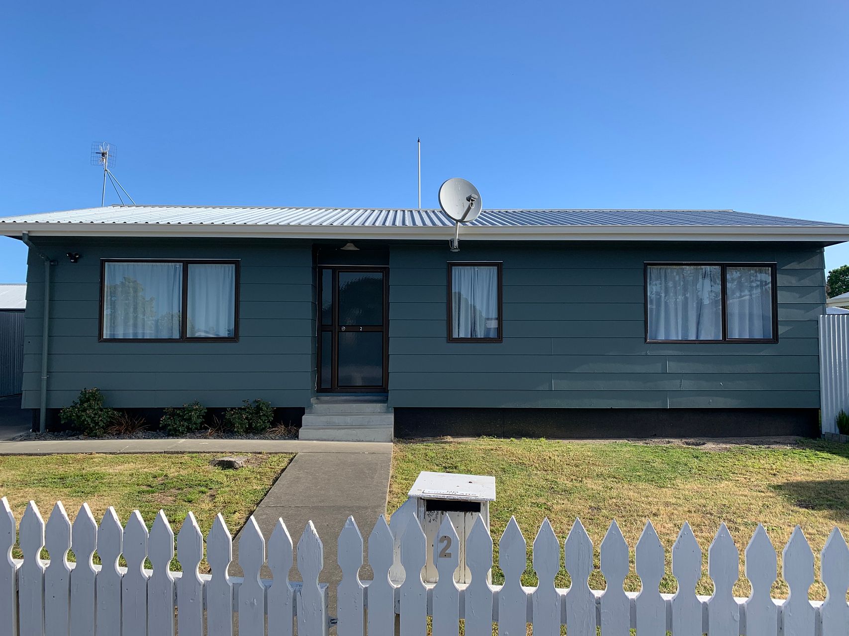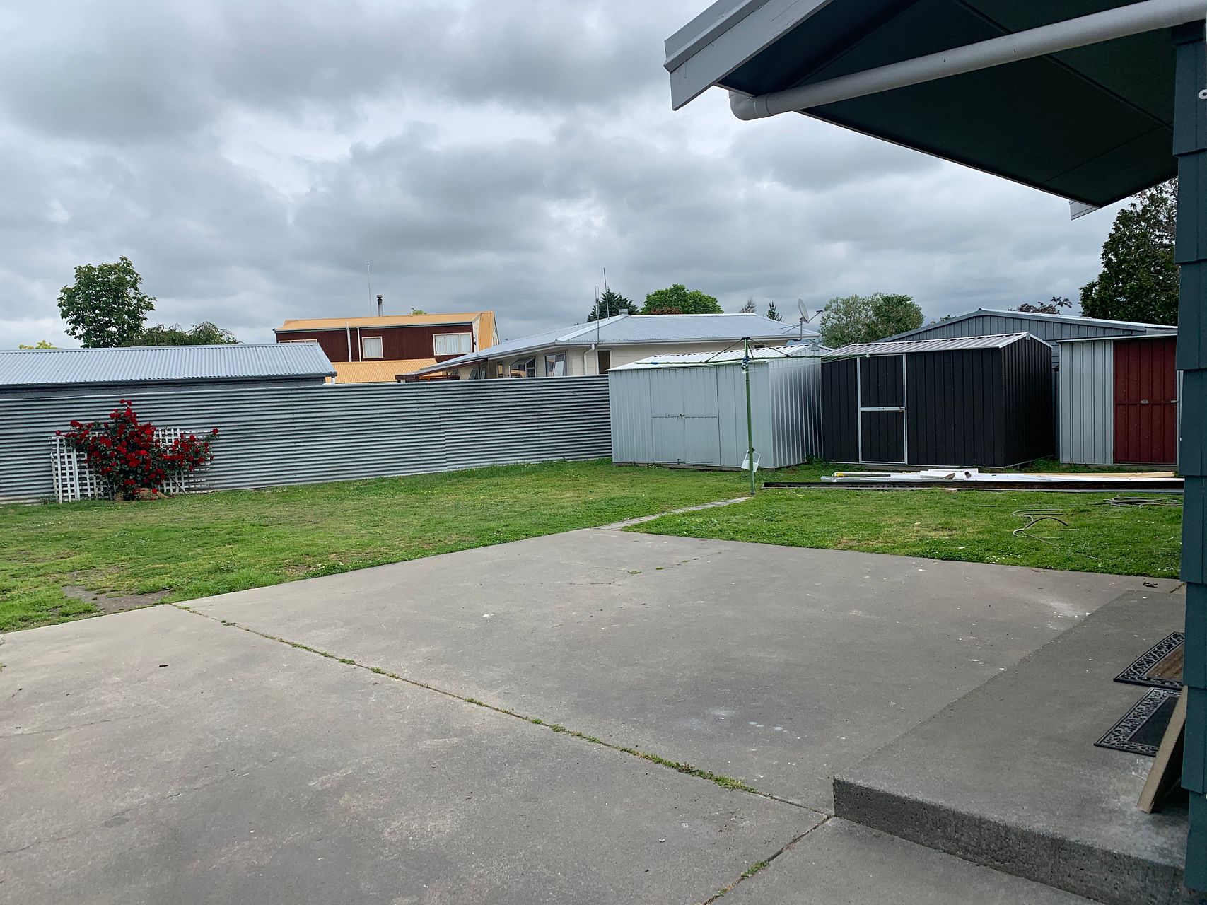 Fully fenced section with a large back yard including storage sheds.