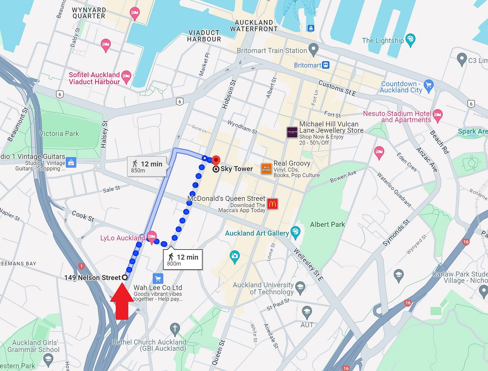 Around 10–12 minutes’ walk to SkyCity and central Queen Street