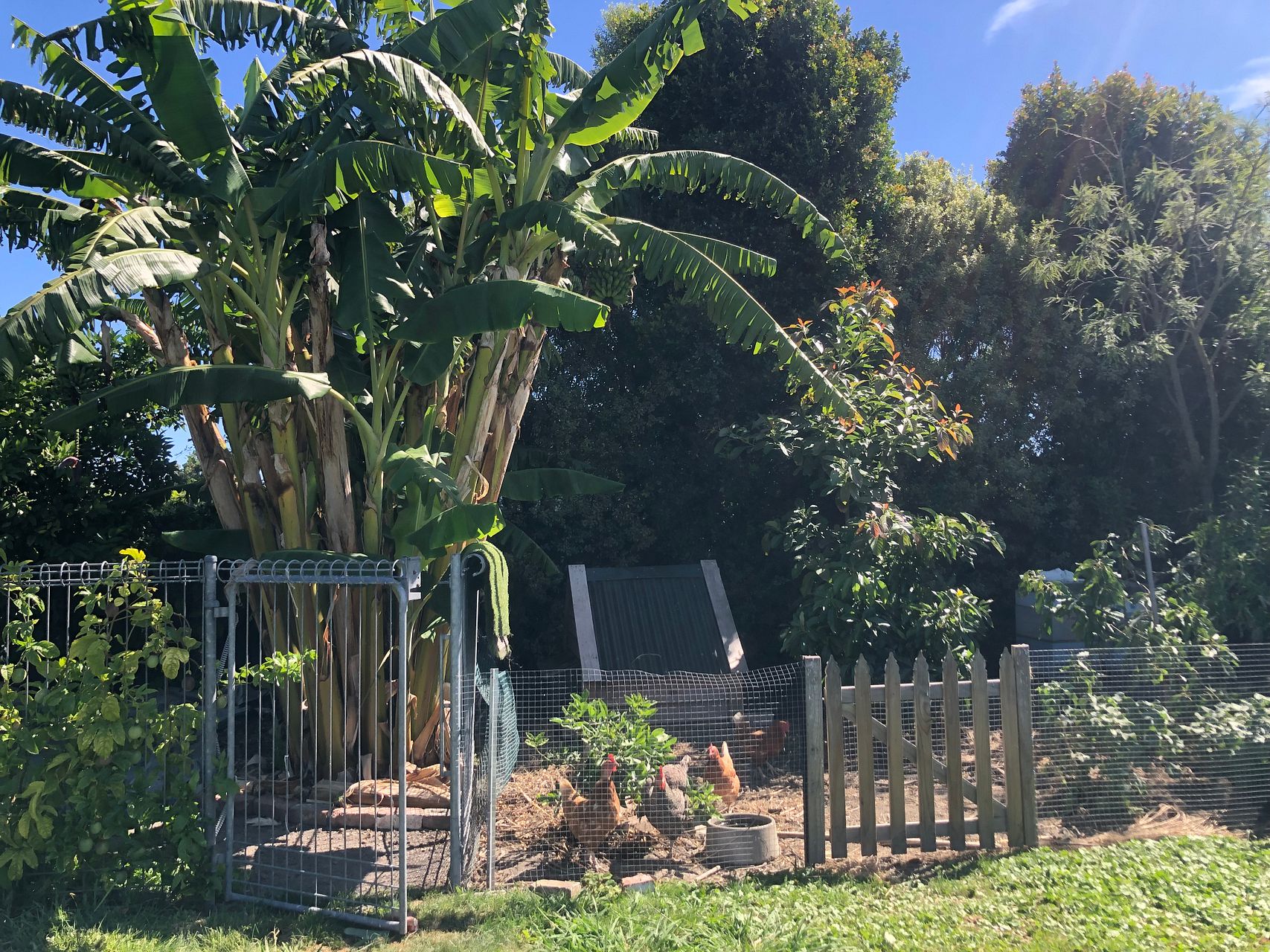 The back yard has plenty of space to run around and also has three good sized garden beds, a chook run with chook house, fenced area for a pop up pool, banana grove, 8 avocado trees of different varieties, boysenberries, raspberries, passionfruit, oranges, mandarins, feijoas, figs, lemon/lime tree, grapefruit.