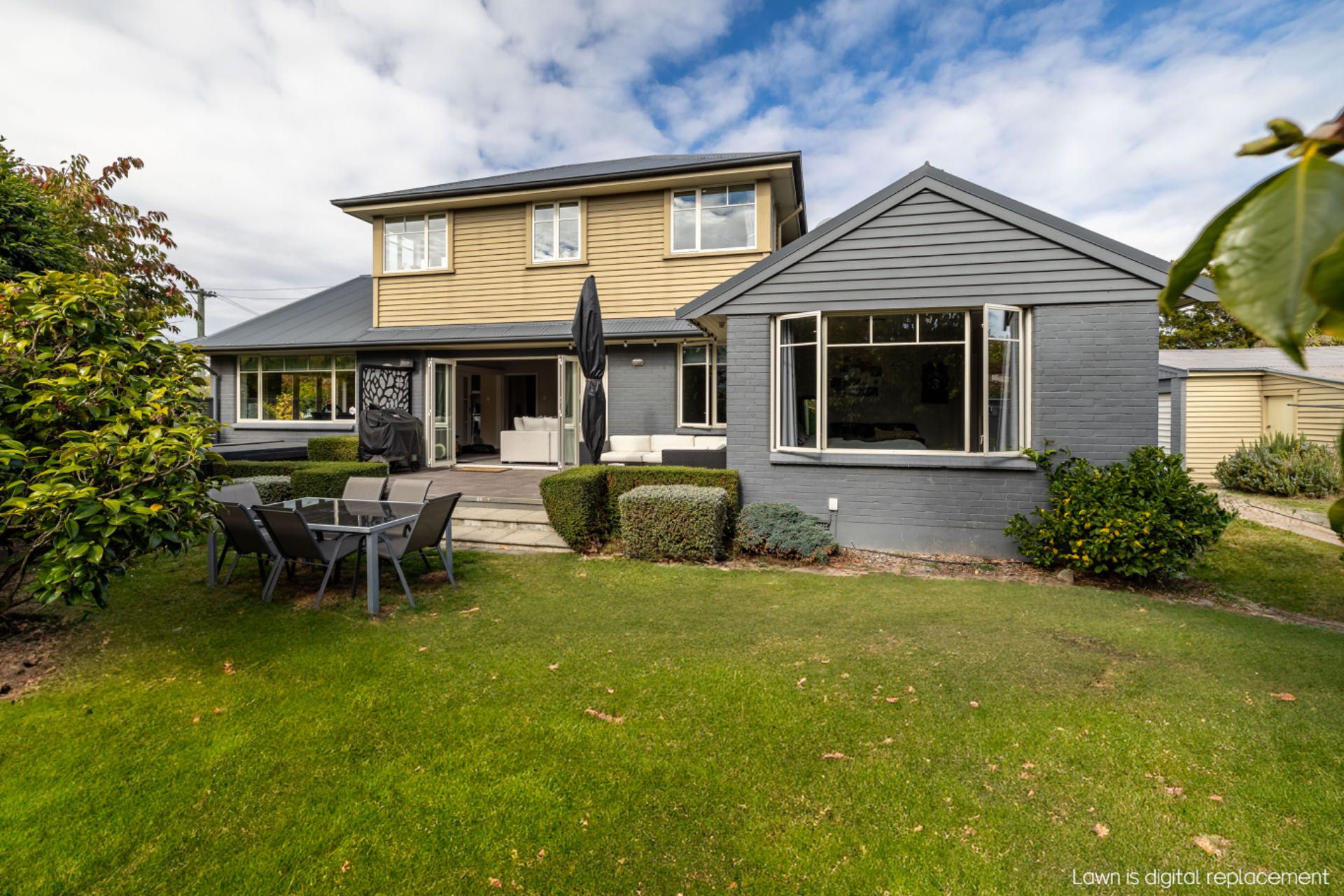 The backyard is fully fenced. Safe for kids to play. Easy Maintenance garden with vege boxes.