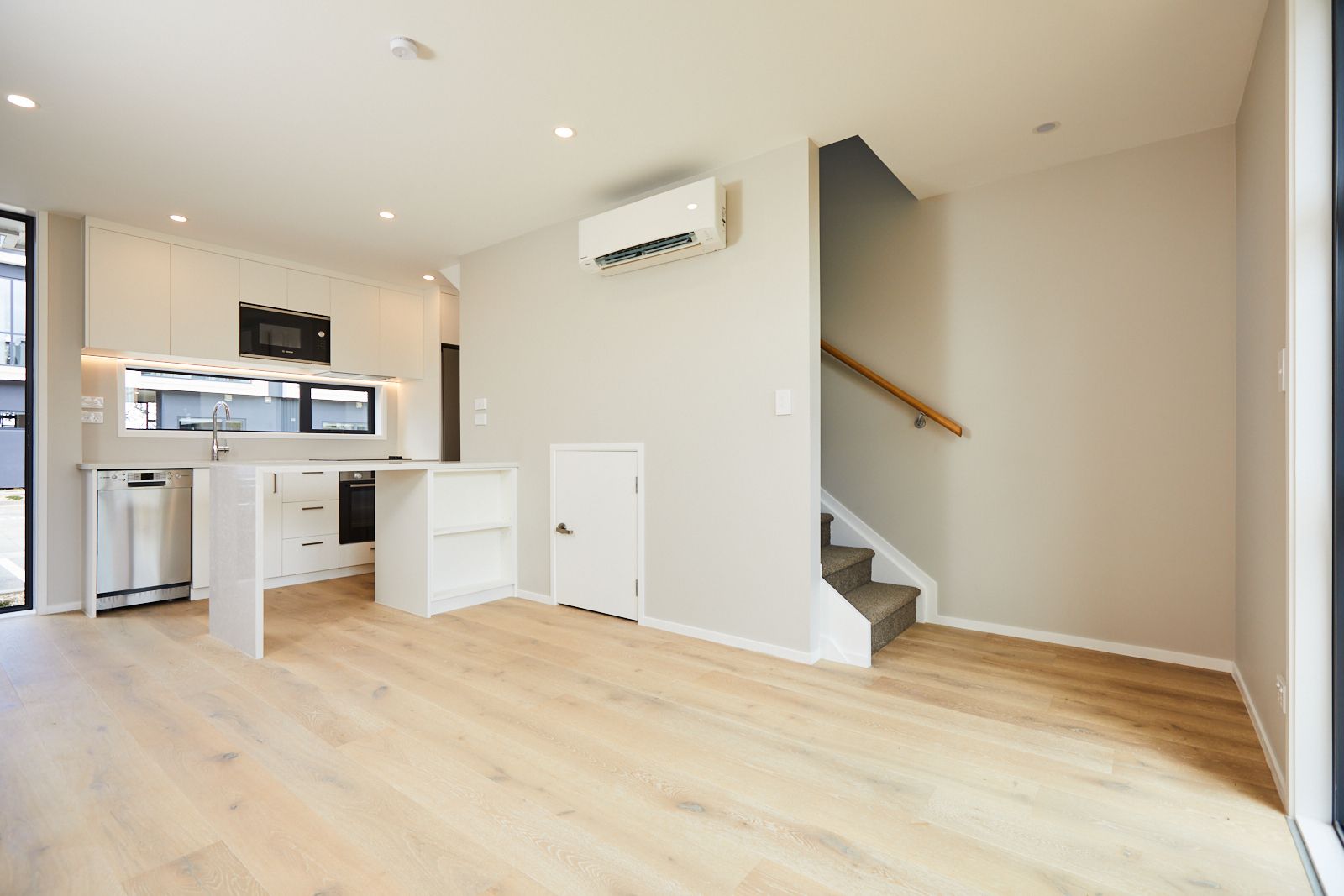 Furnished with microwave, dishwasher, fridge-freezer, oven, induction hob, extractor hood, laundry appliances and heat pump.